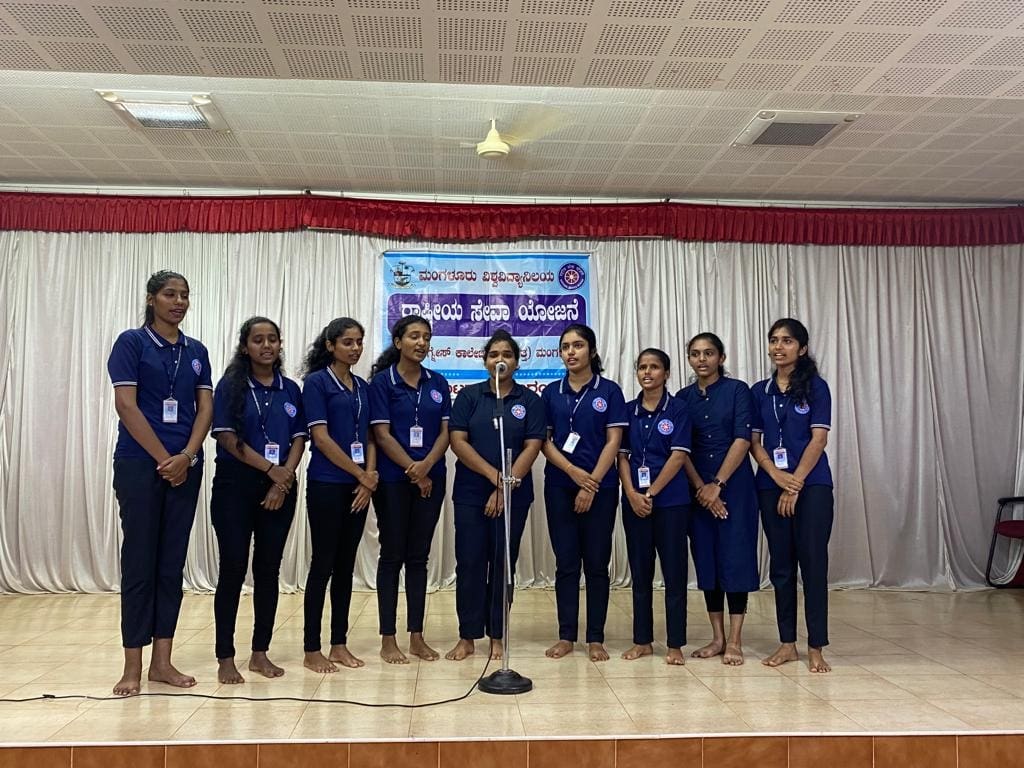 The programme began with a prayer led by Ms Reema and group. Ms Disha and group welcomed everyone with a welcome dance. In his inaugural address, Dr Amin highlighted the need for volunteers to serve the poorest of the poor and educate them about the various government schemes launched for their benefit. He also enlightened the students about the growing addiction to gadgets and drug abuse and asked them to stay away from such vices. Presiding over the inaugural program Principal Sr Dr Venissa A.C. acknowledged the service rendered by NSS volunteers during the COVID and post-COVID period. NSS officer Dr Udaya Kumar B welcomed the gathering and Dr Meera NSS program officer proposed the vote of thanks. A cultural programme was presented by the NSS volunteers. Ms Manisha and group sang melodious folk songs. Ms Mansi and group through the skit highlighted the importance of maintaining cleanliness. Ms Anvitha and group entertained everyone with a folk dance. Ms Vaishnavi compered the programme. NSS secretaries Ms Sammitha and Ms Preksha, NSS Officers Mrs Preetha Tauro and Ms Anusha Noronha were also present on the occasion.