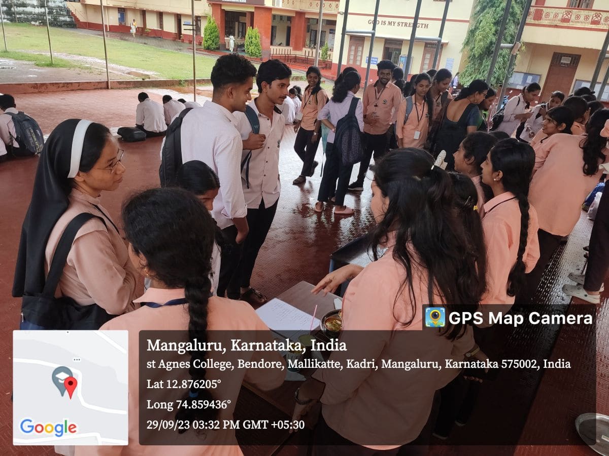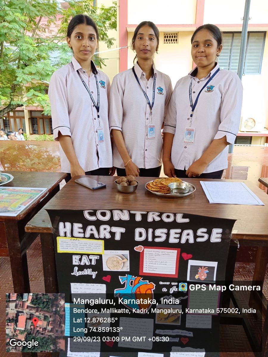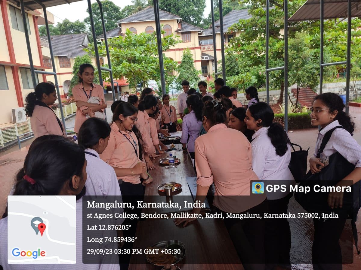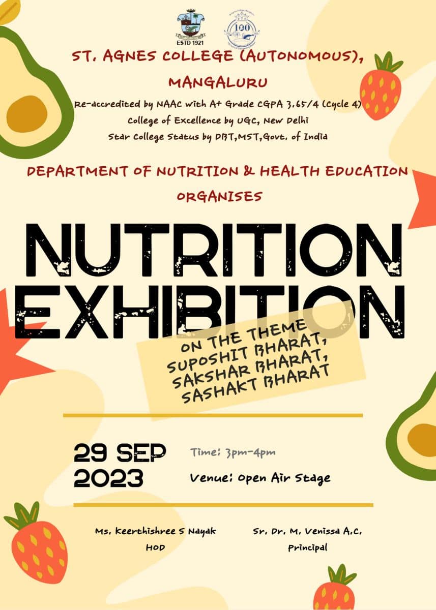 The Department of Nutrition and Health Education, St Agnes College (Autonomous), Mangaluru organized a ‘Nutrition Exhibition’ on 29 September 2023 from 3-4 pm on the open air stage. This interactive event showcased the significance of healthy eating and balanced nutrition. Students creatively presented information on the importance of good food choices and their impact on overall well-being. This activity not only raised awareness but also encouraged students to make informed choices for a healthier lifestyle