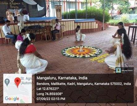 The Onam celebration was held on 7 September 2022 at St Agnes College (Autonomous), Mangaluru. The program began by invoking God’s blessing. The MC for the day Ms Megha Manohar invited the Dignitaries to dais. A warm welcome was given by Abdul Athifa. Sr Dr M Venissa A C, Principal addressed the gathering. Various competitions such as – flower Rangoli, tug of War, Tiruvadhiram, and fashion show, pot hitting were conducted and winners were awarded with prizes. On behalf of staff and students, Ms Megha extended heartfelt gratitude through her vote of thanks speech.