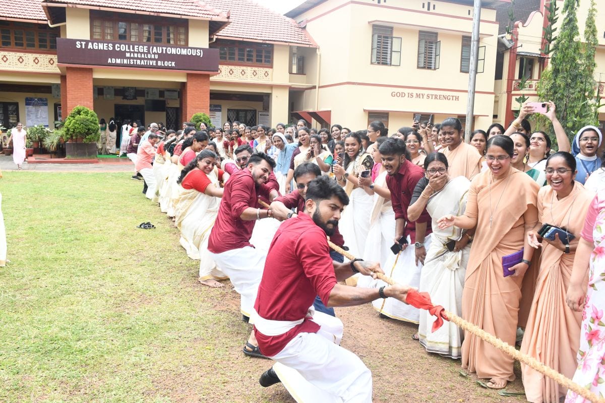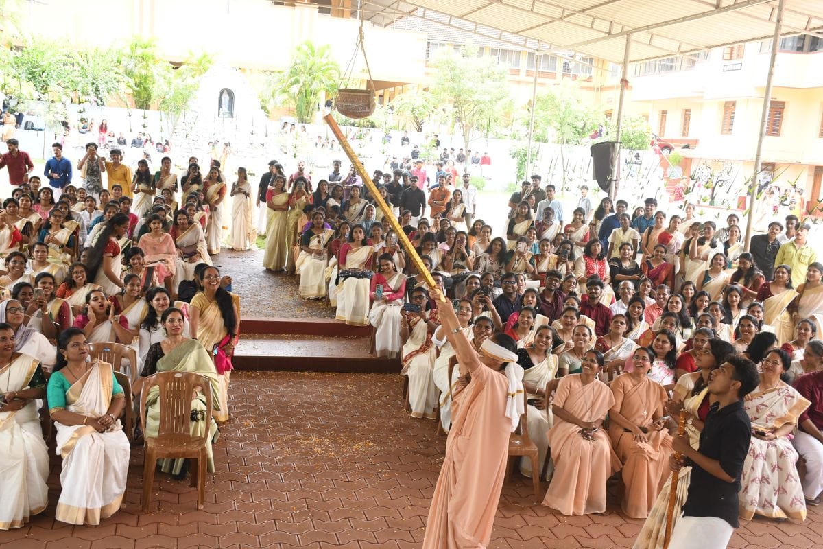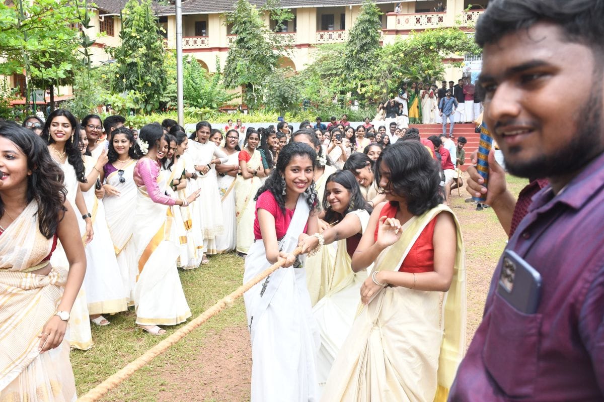 The celebration also included engaging competitions that brought out the competitive spirit among participants, such as tug of war, lemon and spoon races, breaking the pot, sack races, and a pookalam were conducted. All participating students showcased their creativity through intricate floral designs.
