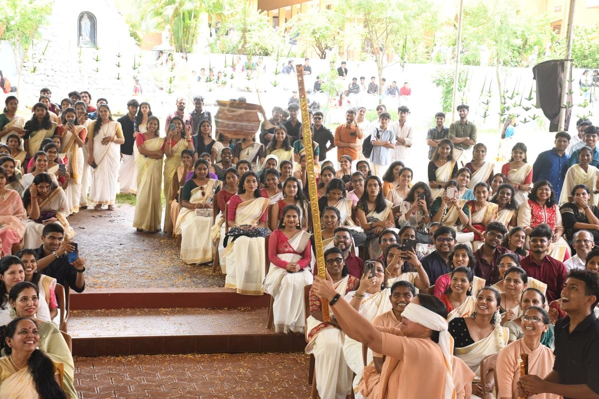 Sr Dr M Venissa AC., the Principal expressed her views on the significance of Onam to focus on peace, harmony and togetherness which needs to prevail among us to have a strong bond within the society and various communities. We need to encourage all the festivals to enhance the rich enriching legacy and tradition of our country.