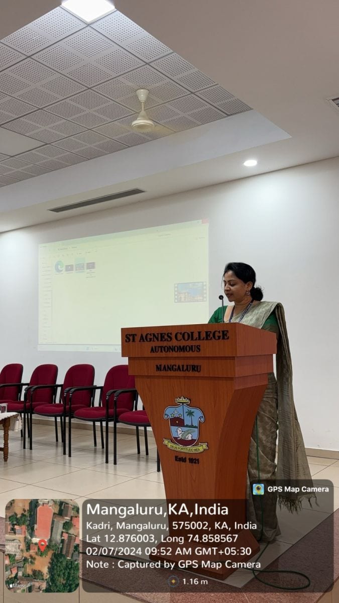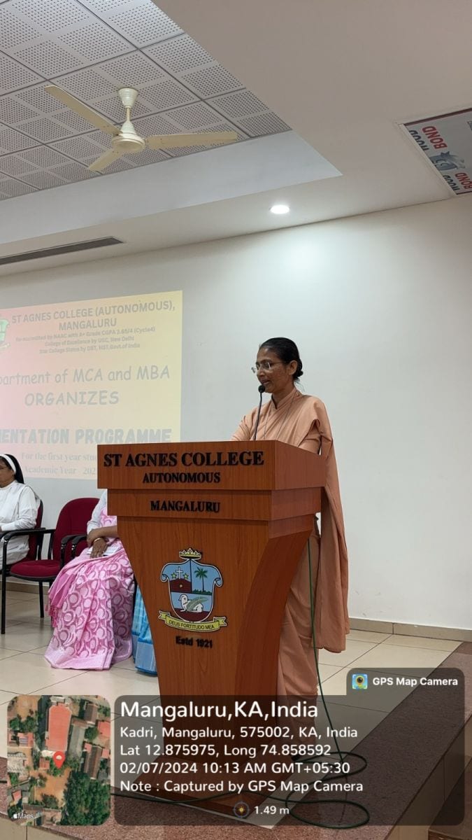 The program began with Ms Akshatha Shetty, Assistant Professor, PG Department of Computer Applications (MCA) , providing a comprehensive overview of St Agnes College’s illustrious history, emphasizing its establishment over 100 years ago in the educational sector. This introductory session laid a strong foundation for the students, acquainting them with the legacy they are now a part of.