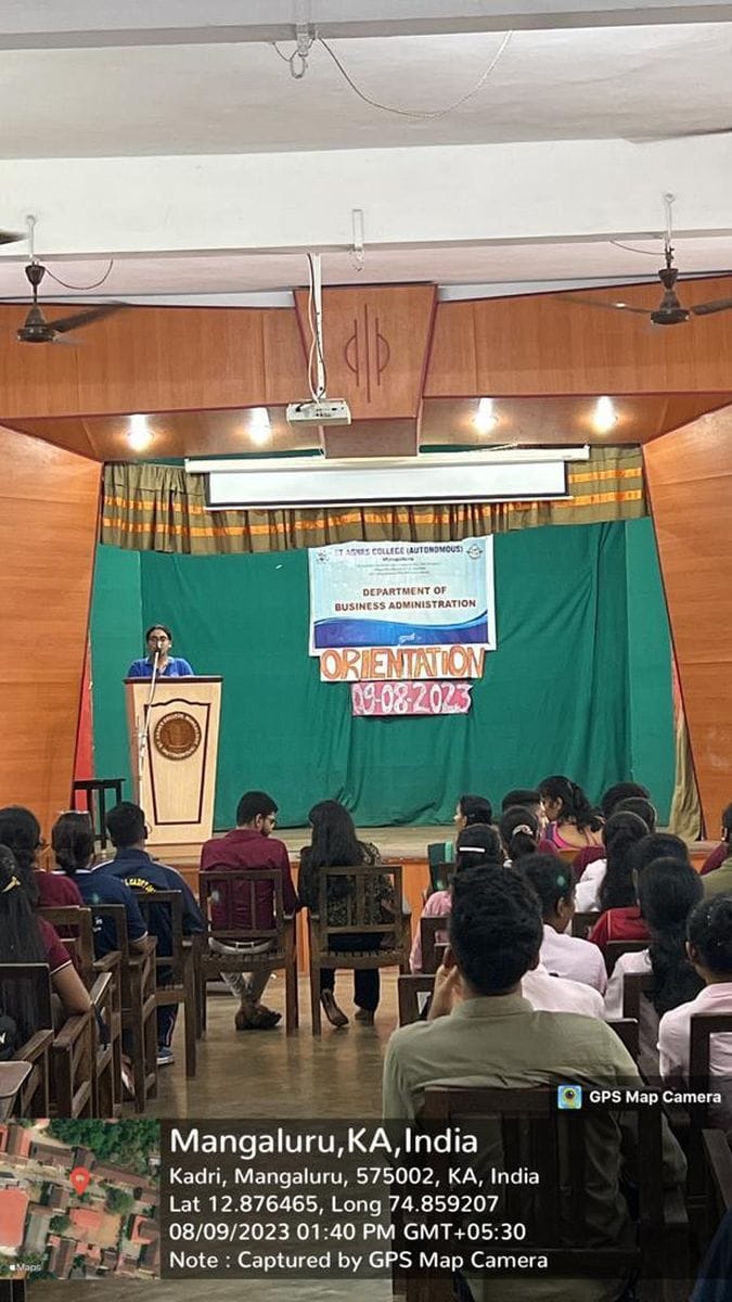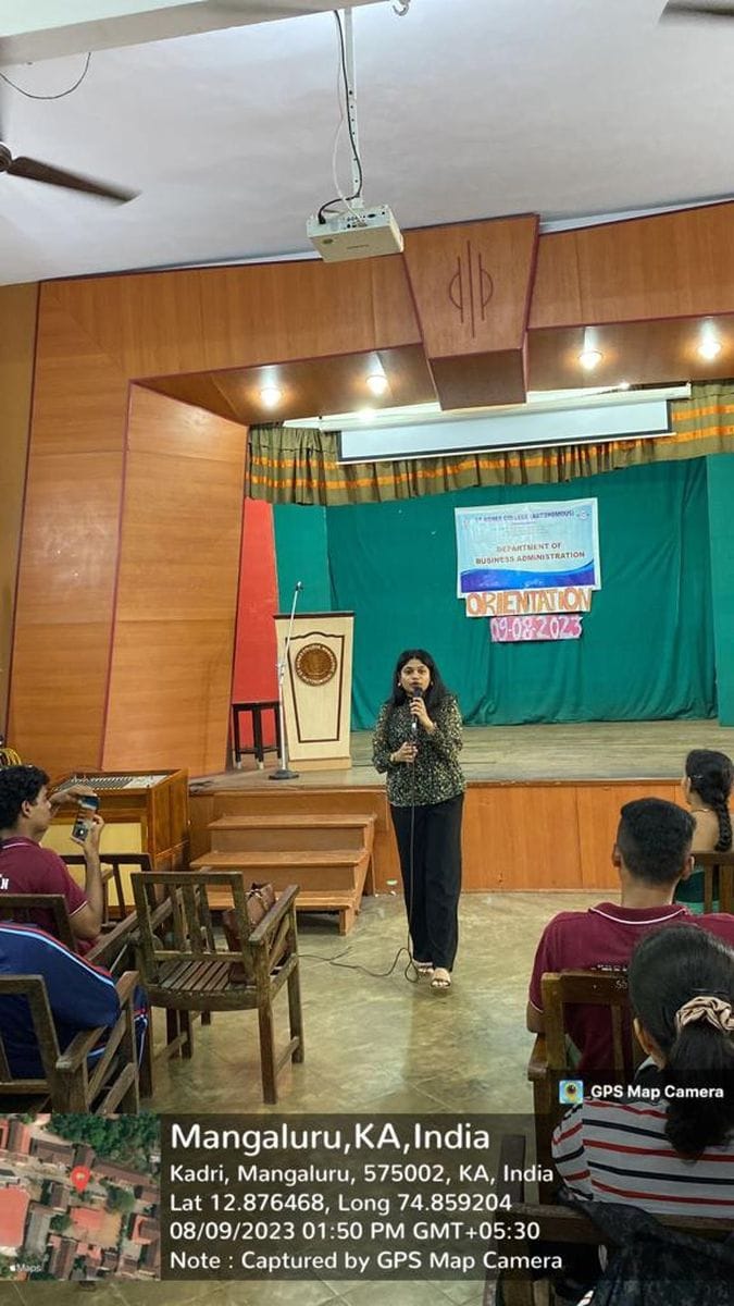 Ms Mirfath Zainab K, was the speaker of the programme. Ms Mirfath Zainab K, Technical Recruiter, People Gamut HR Solutions, Mangaluru. She shared her experience of being the student of BBA and motivated the students to use the opportunity to enhance and sharpen their skills. She also highlighted about how HR recruits people, and explained the relevance of CGPA in the corporate employment. She shared the importance of creating a strong LinkedIn account and encouraged us towards entrepreneurship. The chief guest also encouraged the students to engage in and compete in various competitions so that we can learn and grow. Ms Anitha S, HOD of BBA oriented the students about the rules and regulations of the college and the department to be followed by all. Miss Aifa of III BBA proposed the vote of thanks and the program concluded with the college anthem. The programme was compared by Miss Insha of III BBA.
