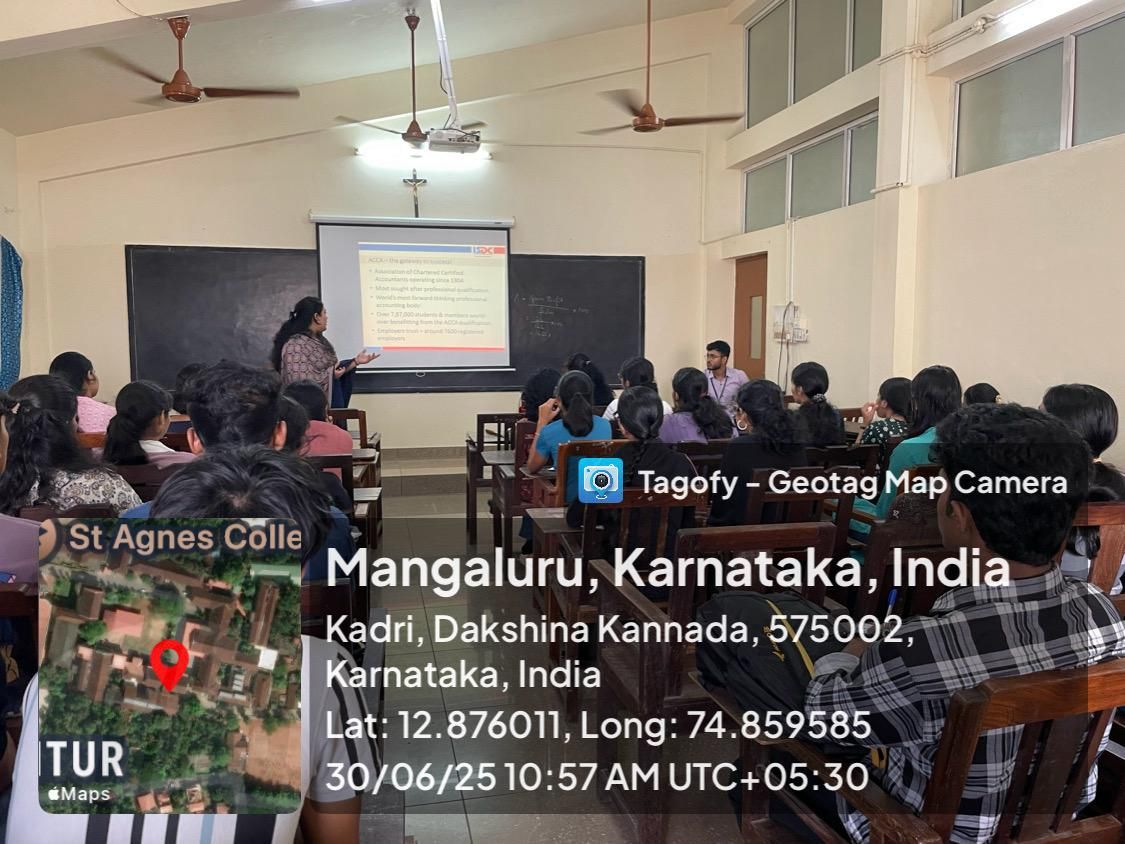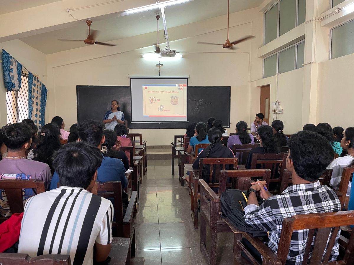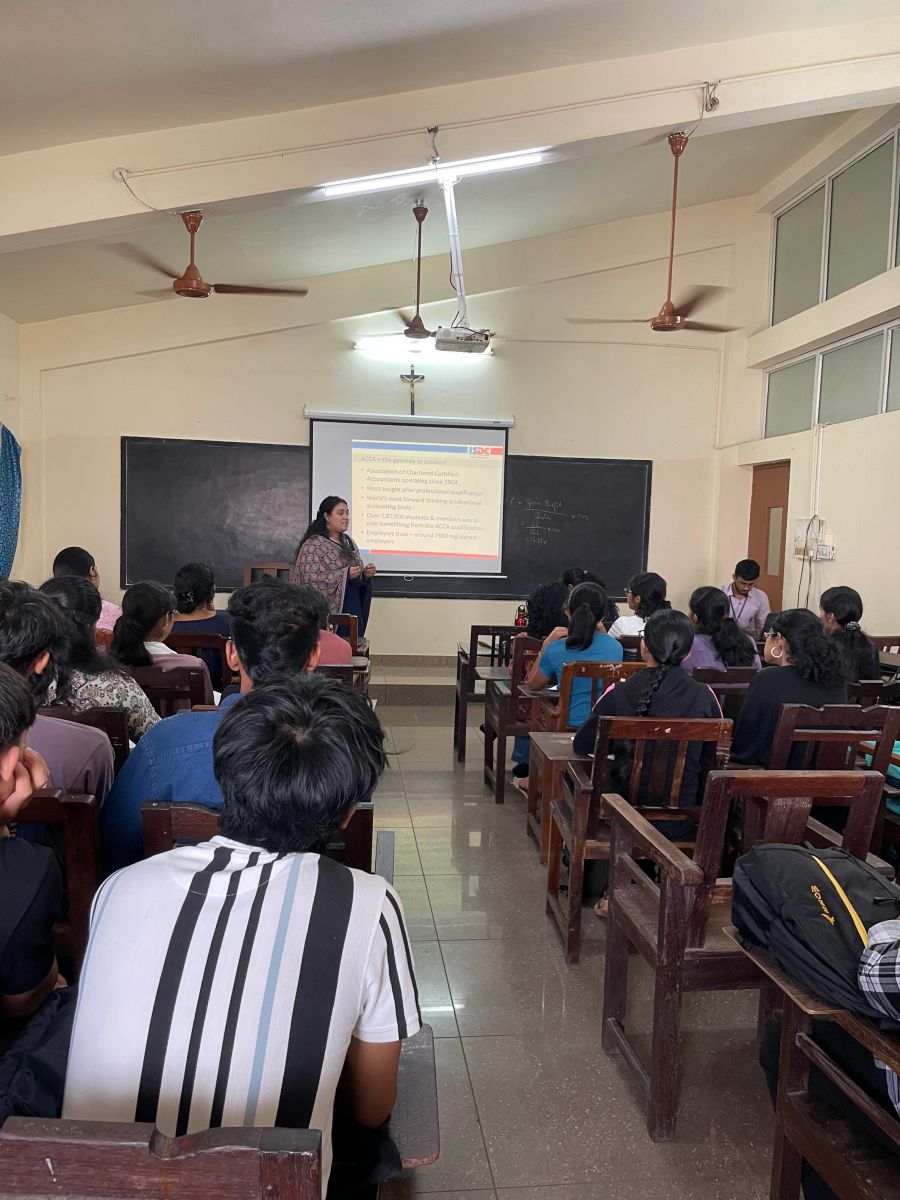 The Department of Commerce organised an Orientation Programme for I B.Com ACCA students on 30 June 2025. Ms. Nandadevi K.V., Regional Manager – Business Relationship, and Ms. Falguni M. Maniar, Associate – Operations, from ISDC, delivered a session covering key aspects of the ACCA qualification. Ms. Nanda Devi and Ms. Falguni guided the students through the essential aspects of the ACCA journey, including the intricate registration process, a detailed breakdown of exam and registration fees, an overview of the annual subscription, and crucial information regarding exemptions available for aspiring professionals. This foundational knowledge is expected to empower students as they embark on their ACCA journey, fostering confidence and preparedness for their professional aspirations.