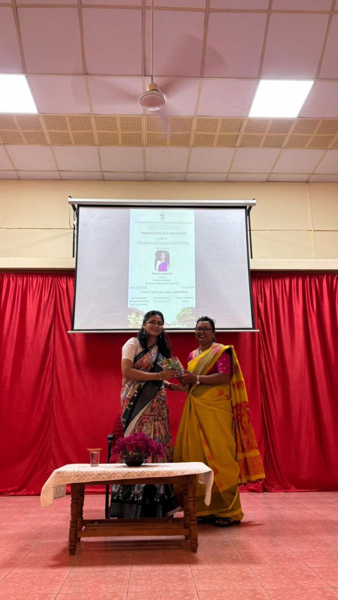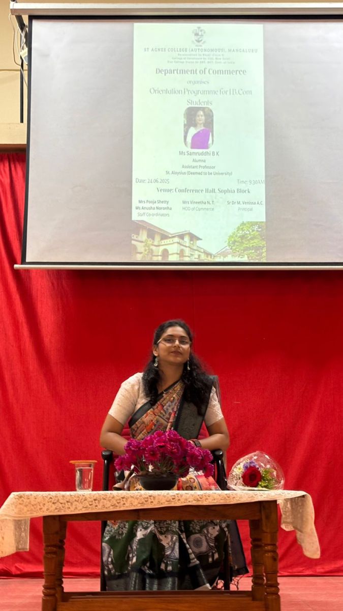 The Head of the Department, Mrs Vineetha addressed the I B.Com students, providing them with important instructions regarding academic guidelines, discipline, and active participation in departmental activities.