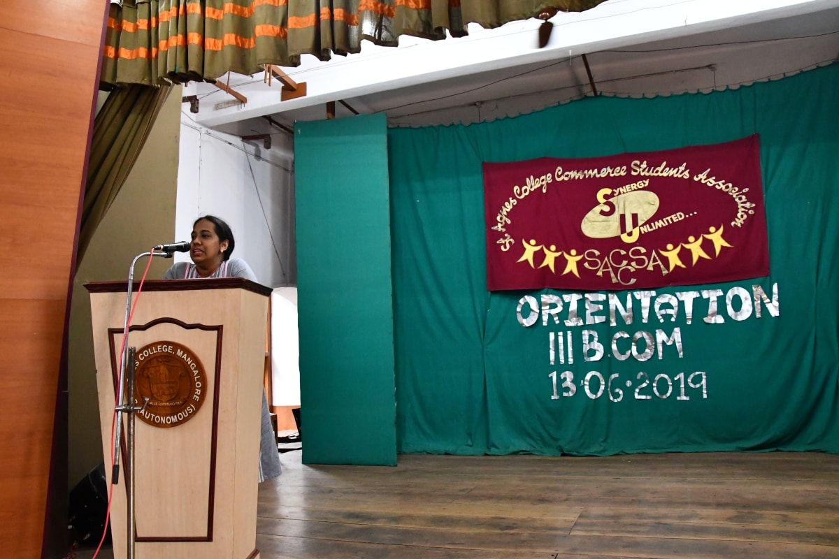 The department of Commerce of St Agnes College had organised an orientation programme on 13 June 2019 at 2.30 pm. The guest speaker was CS. Apeksha Compliance officer and a Practising Company Secretary at CS Chethan Nayak & Associates, Mangaluru.
