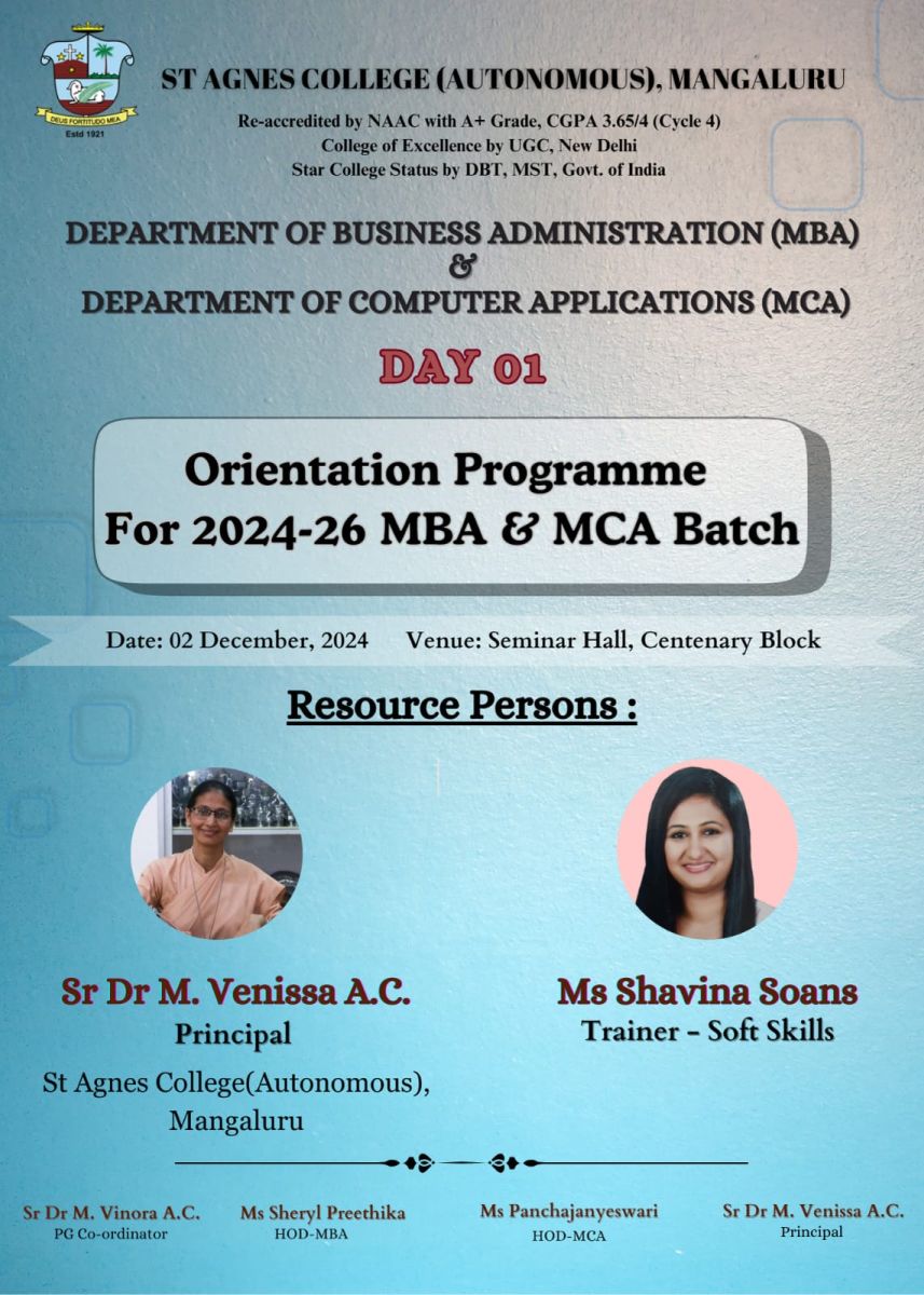 The orientation programme was well-organized, informative, and inspiring, setting a strong foundation for the MBA and MCA students of the 2024-2026 batch. The blend of motivational talks, values orientation, and skill-building sessions left a lasting impression on students and parents alike.
