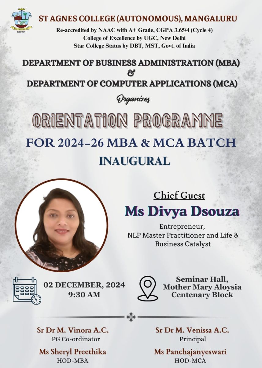 Venue: Seminar Hall, Mother Mary Aloysia Centenary Block, St. Agnes College (Autonomous), Mangalore