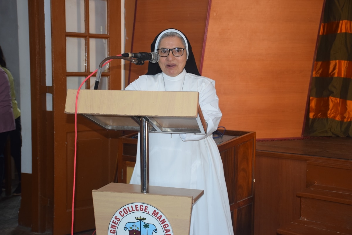 Sr Dr. M. Jeswina A.C, Principal of St Agnes College, gave presidential remarks. She encouraged and motivated the participants to actively participate in this workshop and develop their artistic skills.