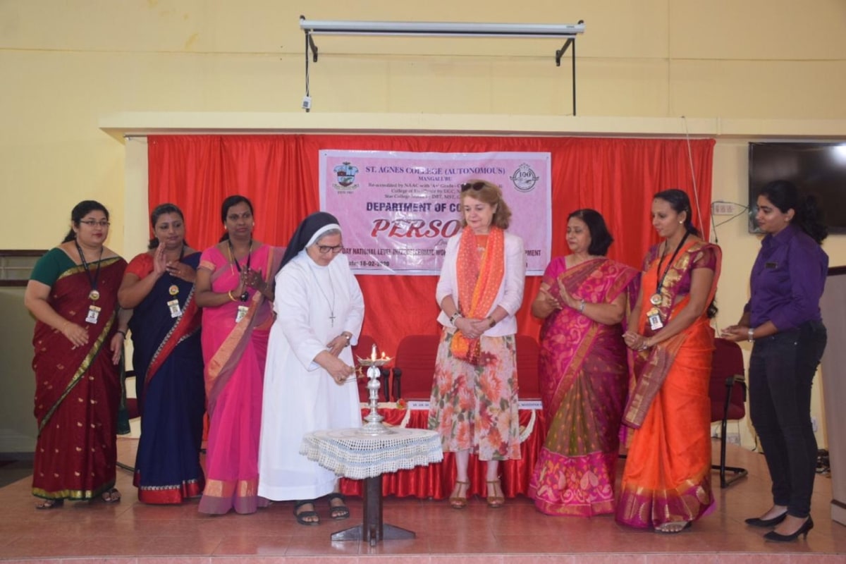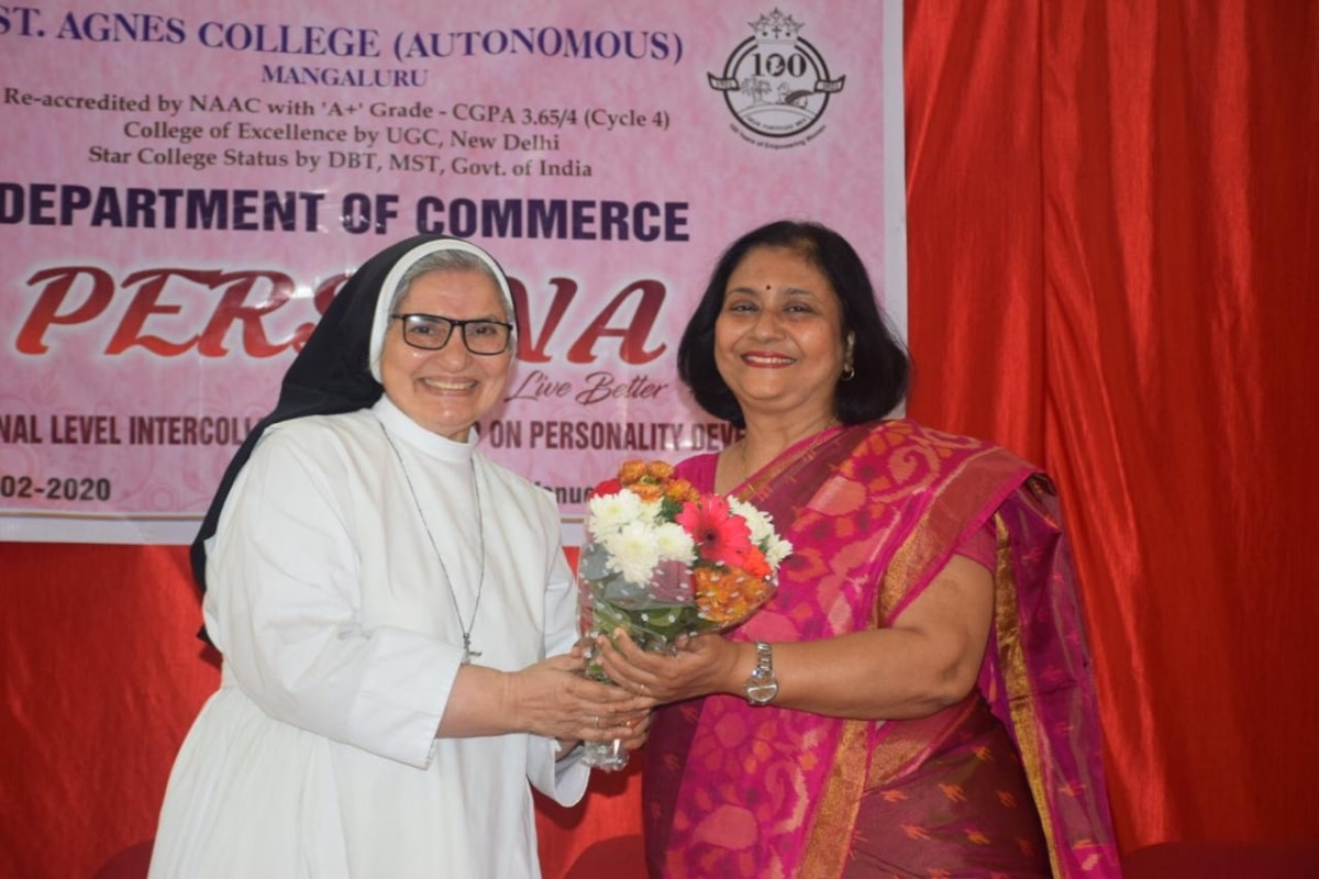 Ms. Nimitha , HOD of the Department of Commerce, St.Agnes College, Mangaluru, Ms. Sheryl. P , Dean of Commerce and Management, Ms .Anitha, Convener of Persona 2020 , Ms. Anusha Noronha, Co- Convener of Persona 2020 and Ms. Rakshika , Student Vice- President of Commerce were also present on the dais.
