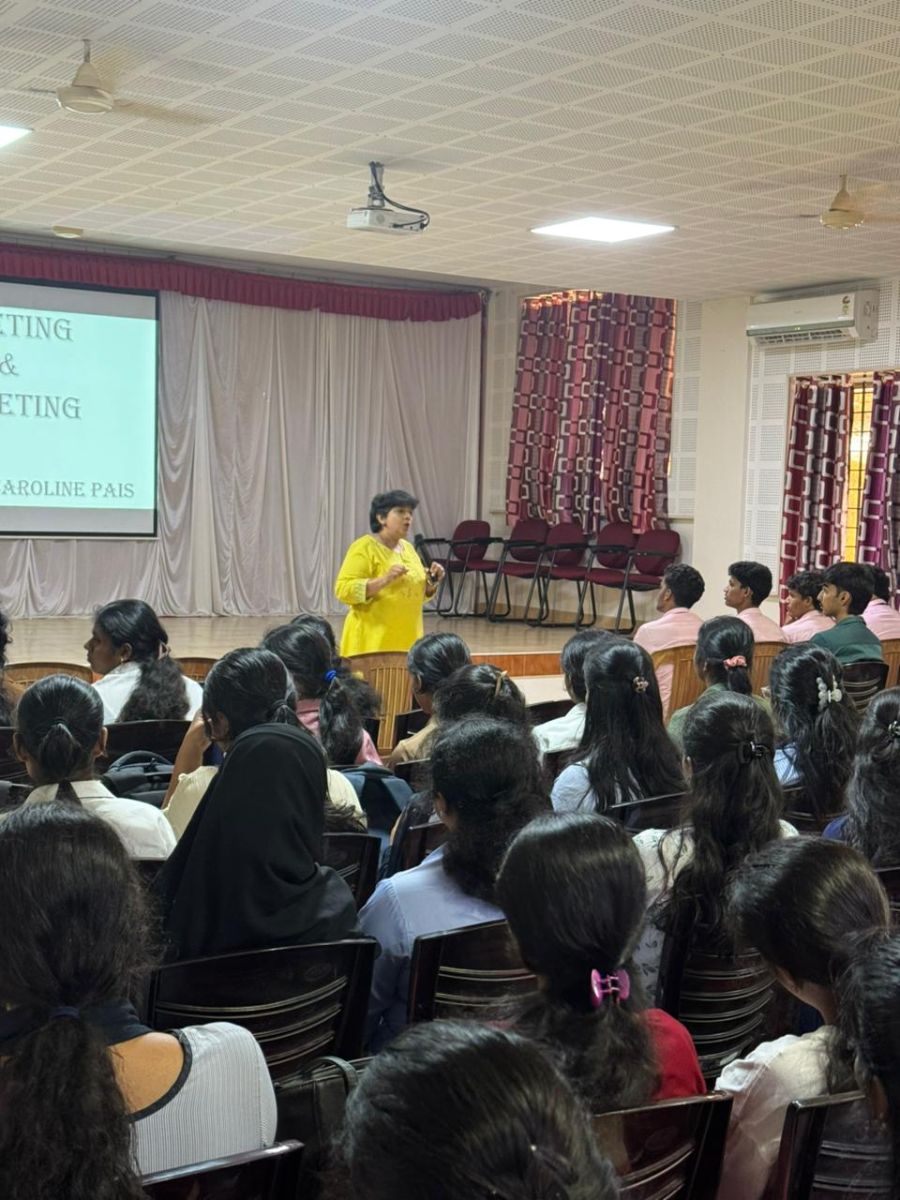 The Chief Guest and Resource Person, Dr. Preethi Keerthi D’Souza, Associate Professor, Mangalore University, delivered an engaging session on “Leadership Excellence: Building Future Leaders.” Her session focused on developing leadership qualities among students, highlighting the importance of vision, confidence, responsibility, and effective decision-making in becoming successful leaders. She motivated the students to identify their strengths and work towards continuous self-improvement.