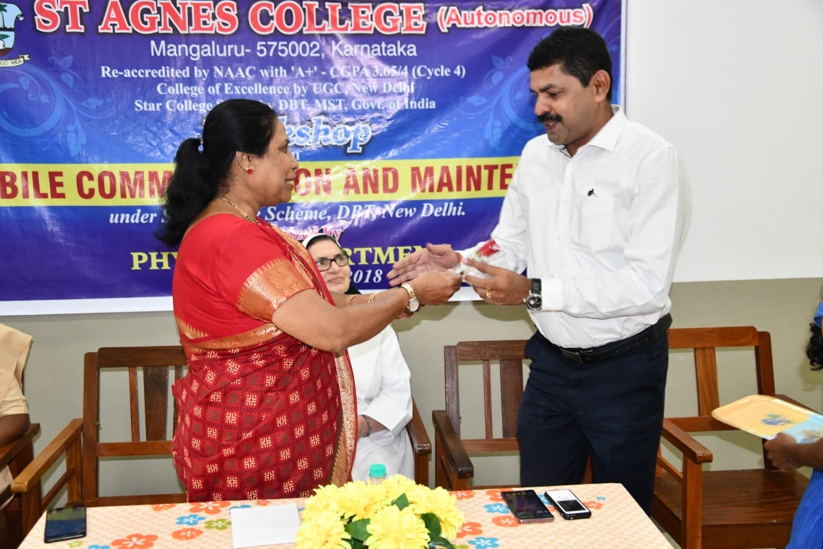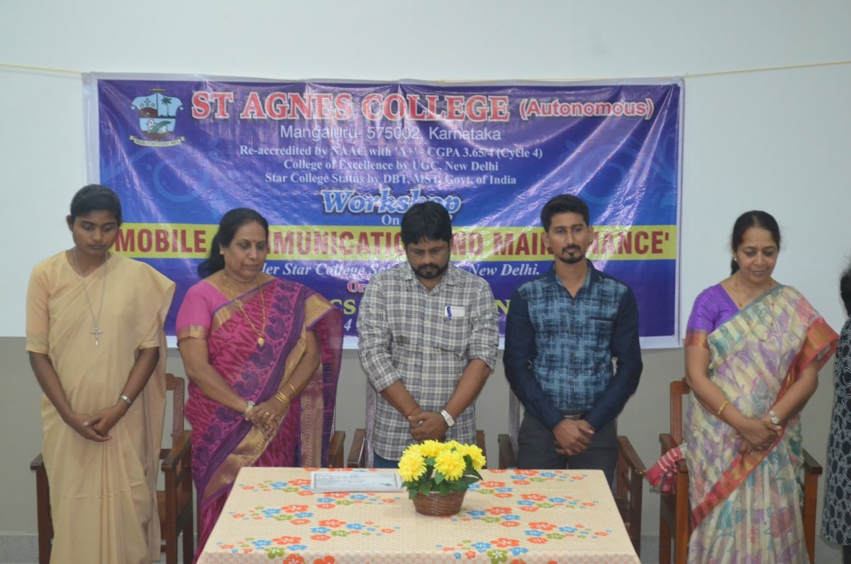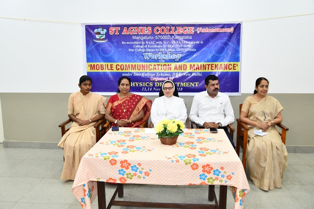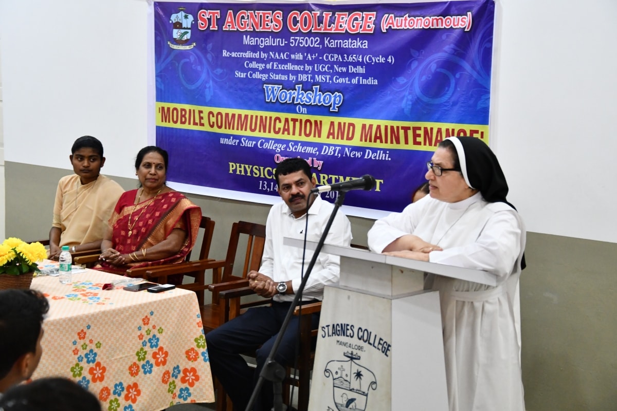 In order to give an opportunity to learn the importance of mobile communication and how a mobile phone works and to get the knowledge to repair it in emergency, Department of Physics, St Agnes College (Autonomous), Mangalore organized two days workshop on “Mobile Communication and Maintenance” on 13 and 14 November 2018 under Star College Status, DBT New Delhi. The workshop was inaugurated in the morning of November 13, 2018. Mr Murali H, Director (Operations) of BDPS Computer Education, Mangalore was the Chief Guest and Sr Dr M Jeswina AC, Principal of the College presided over the inaugural programme.Prof. Mariola C Pinto, Chairperson & Coordinator of the workshop explained the purpose and the background of the workshop. Prof. Marina Lobo welcomed the gathering. Mr Murali H expressed his appreciation of the efforts made by Physics Department of the College towards gaining knowledge in ‘Mobile Communication & Maintenance’ and stressed the importance of using mobile phone positively in our life. Sr Dr M Jeswina A.C inspired the students to make use of the workshop and also expressed her views on the importance of mobile communication. Sr M Evet Priya AC rendered vote of thanks. Ms Lidia Maria DSouza compered the inaugural programme. Later for two days the sessions with practical on Introduction to Electricity, Mobile communication, Mobile phone theory, trouble shooting were taken up by the Resource persons Mr Rajesh Kumar and Mr Michael Luis. Students deeply appreciated the commitment, enthusiasm and knowledge shared by the two resource persons. The valedictory session was conducted on 14, November 2018. Mr Rajesh Kumar and Mr Michael Luis presided over the valedictory session. The participants expressed their extreme satisfaction on what they learnt from the workshop. Certificates of participation were distributed to mark the closing of the ceremony. Ms Jyothika welcomed the gathering, Ms Parvati Hanamant Ravadi rendered vote of thanks and Ms Carol D Silva compered the evening session