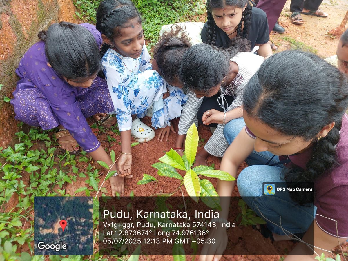 Finally, the main part of the event took place — the plantation drive. College students, hand in hand with the school children, planted saplings on the school campus. The activity fostered a spirit of teamwork and environmental responsibility among all participants.