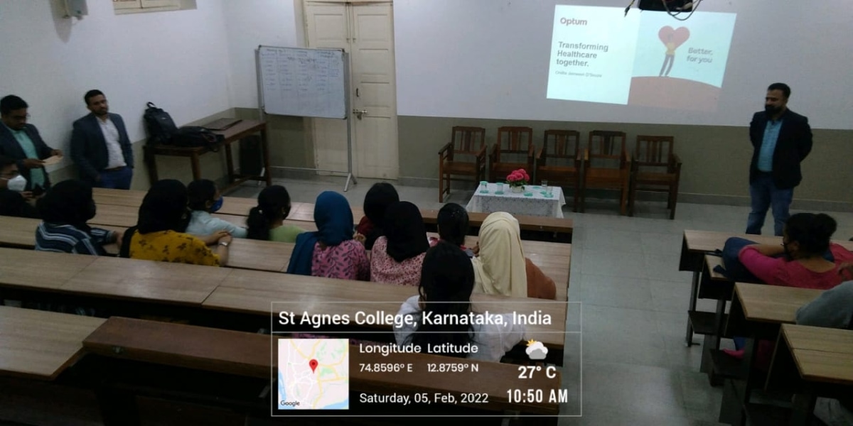 A campus interview was held On 5th of February , 2022 at St. Agnes College, (Autonomous) Mangalore. Students from St Aloysius College and St Philomena’s College were also present for the Campus Drive. The session began at 10 : 30 am with the brief welcome speech given by Mrs. Lawren Castelino , Asst Professor , Dept . of Commerce. The session started by brief introduction of the Company Optum given by Mr. Orville Jameson D’Souza, Vice- President India Operations. The second session was regarding medical coding given by Mr. Sudipto Kumar Das, Manager medical coding. He gave detailed information about the medical coding world to the interviewees. The third session was taken by Mr. Suhail Siddharth , Director – Human Capital . And the last session was taken over by Mr. Clement Joel Sequeira, Head for Talent acquisition . He gave brief ideas and details of the compensation , benefits and the growth of the employees as well as the of the Optum.
