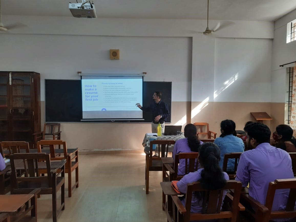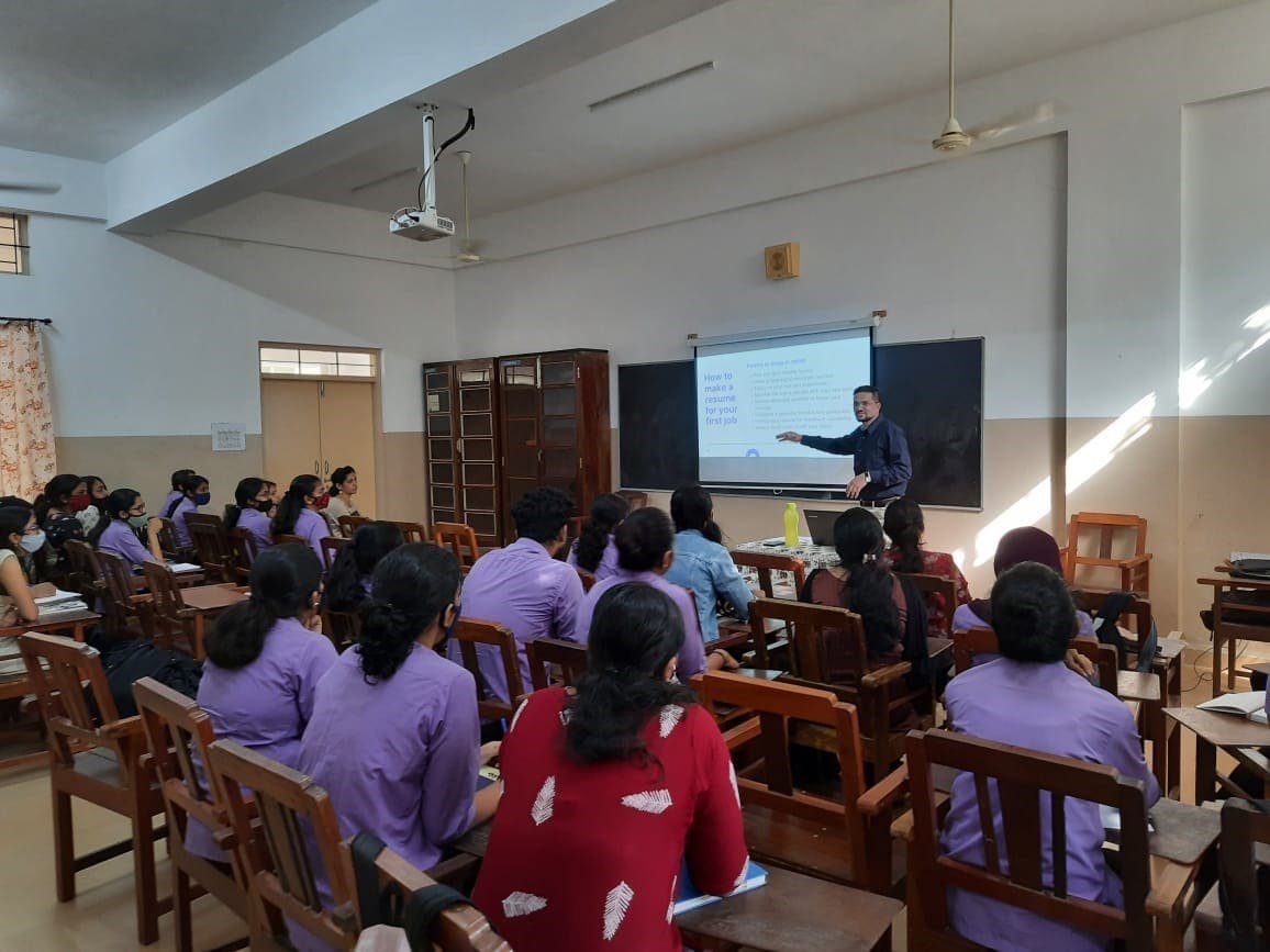 Next, Mr Jeswin Castelino took up the topic ‘Personal Interview’ and shared a few points and tips with the students. He also focused on how a person must dress up for an interview as well as ones body language. He also shared the common questions asked during an interview and how one could answer it.