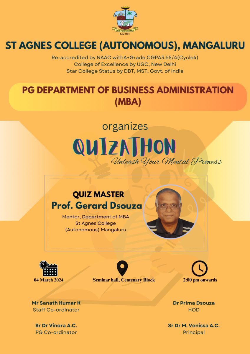 The esteemed mentor of the PG department of MBA, Prof. Gerard Dsouza, graciously served as the quiz master for the event. A total of eight teams, comprising students from both MBA and MCA, enthusiastically participated in the Quizathon, showcasing their knowledge and mental acuity.