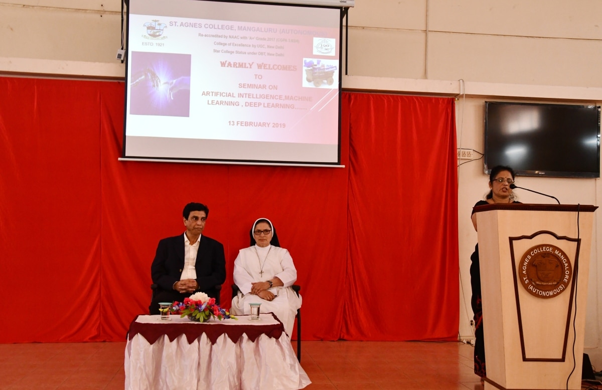 Taking forward the pride legacy, St Agnes College( Autonomous), Mangaluru organized a Seminar on Data Analytics, Artificial intelligence, Machine Learning and Deep learning for Engineering students from various Institutes covering Dakshina Kannada and Udupi Districts on 13 February 2019.