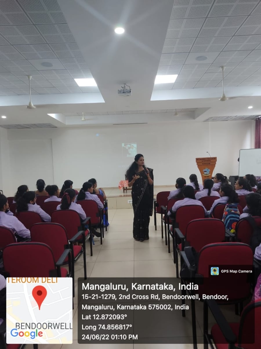 The Department of Commerce, St Agnes College (Autonomous), Mangaluru organized a workshop on ‘Presentation Skills and Self Awareness’ for the first-year B.Com students on 24 June 2022.