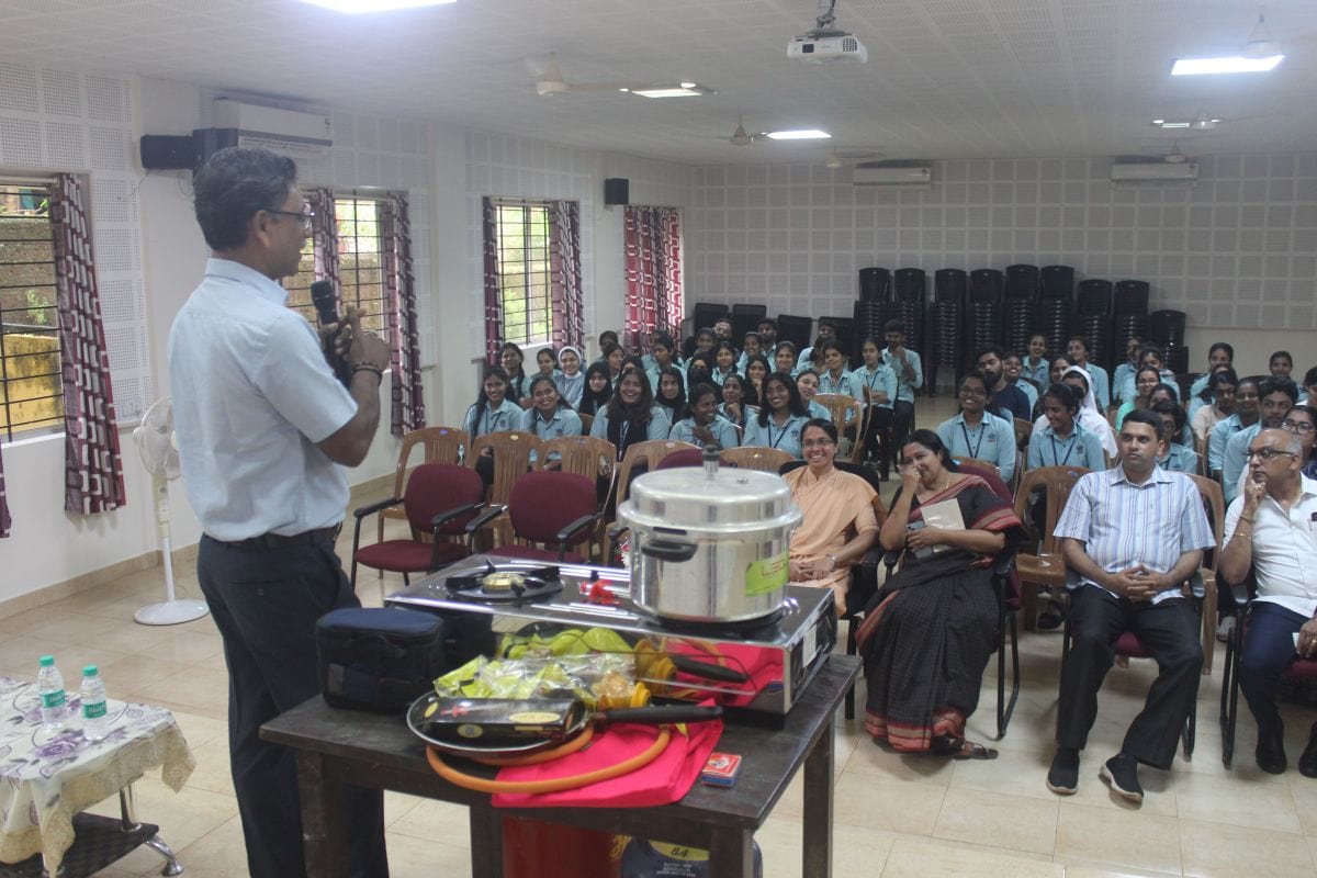 Mr. Charan, the resource person for the event, delivered an informative session on the proper usage of gas cylinders and essential safety measures to follow while handling gas equipment. His practical demonstration and clear explanations were well-received by the audience, helping raise awareness about gas safety in daily life.