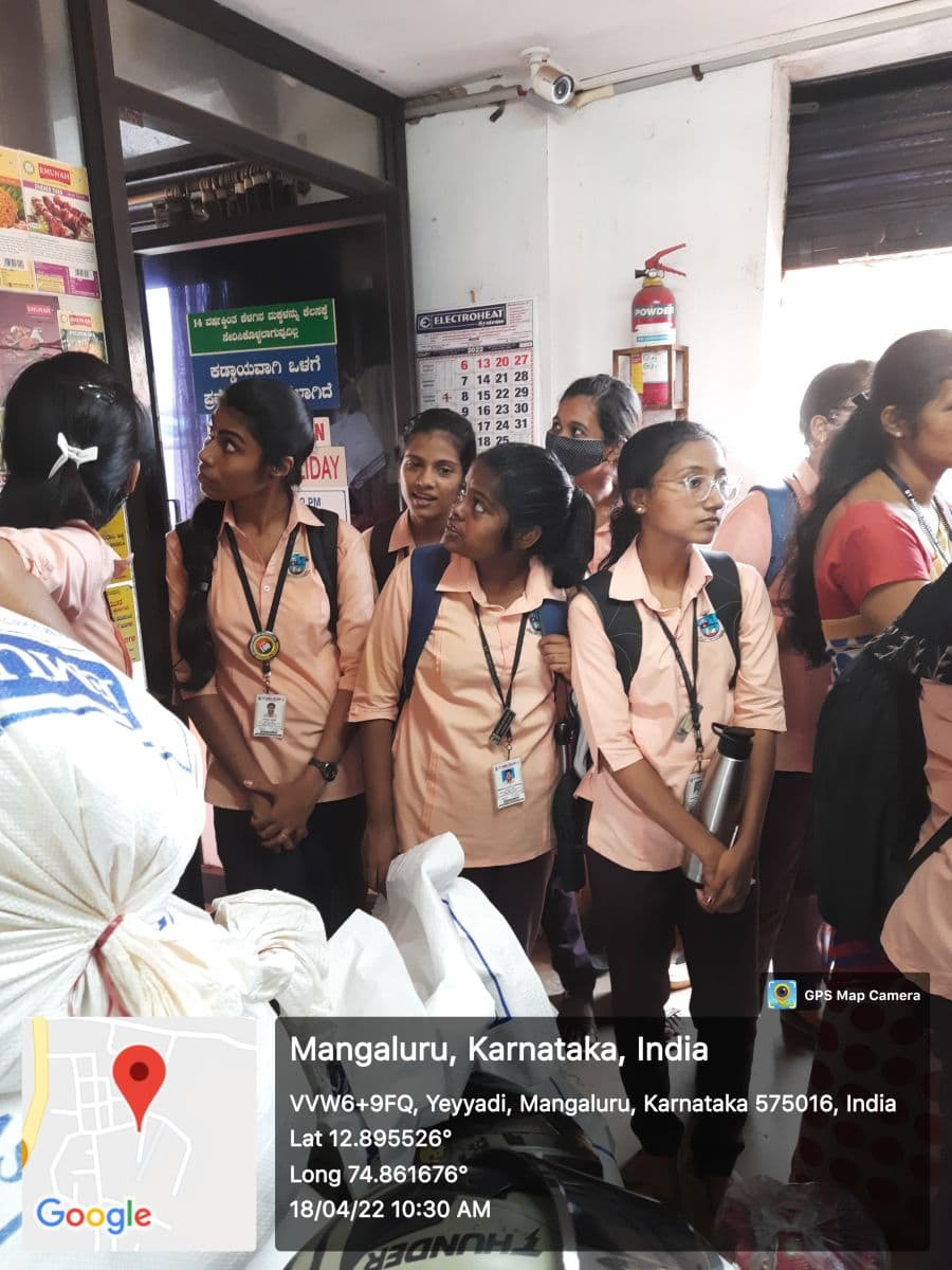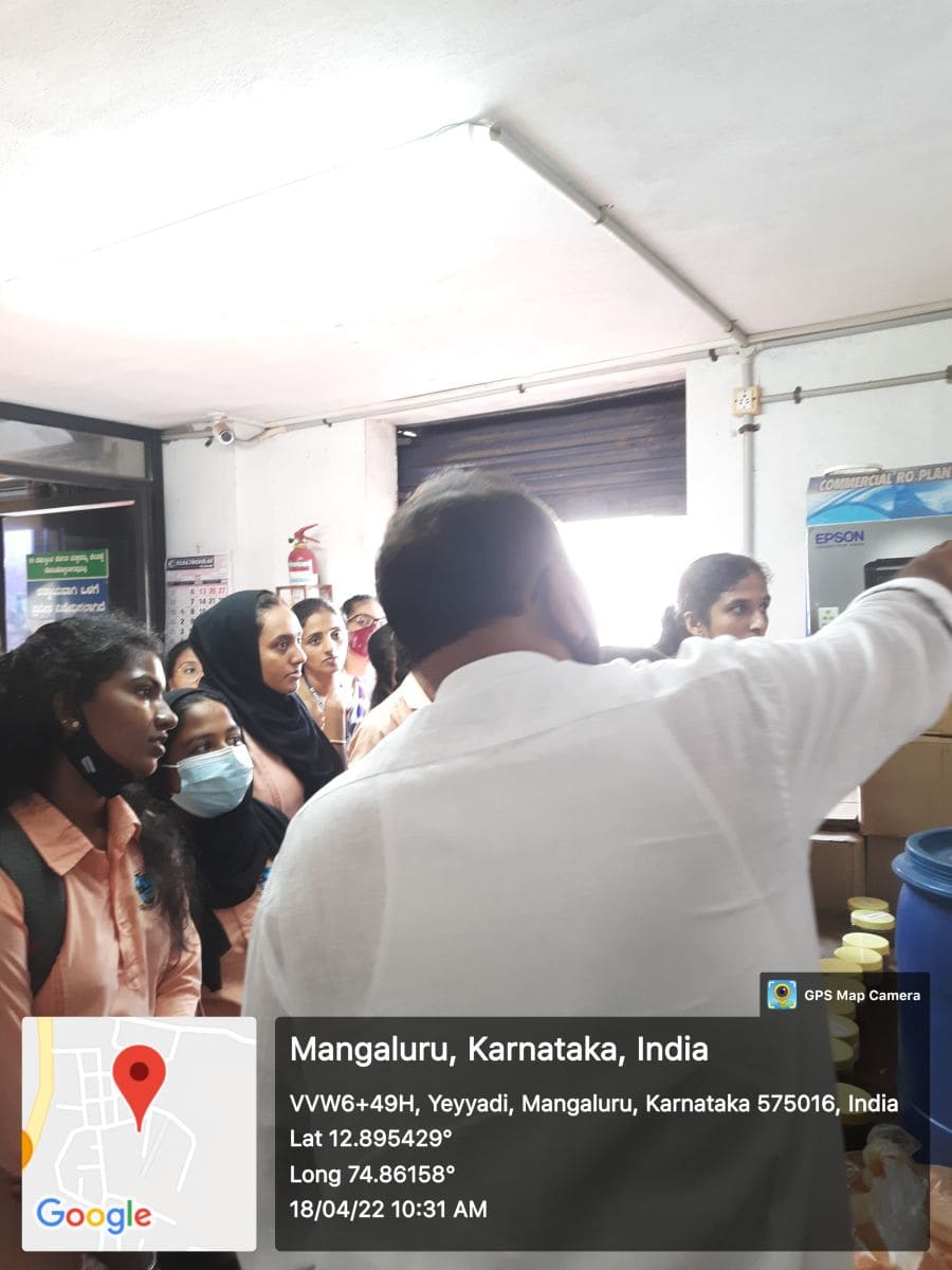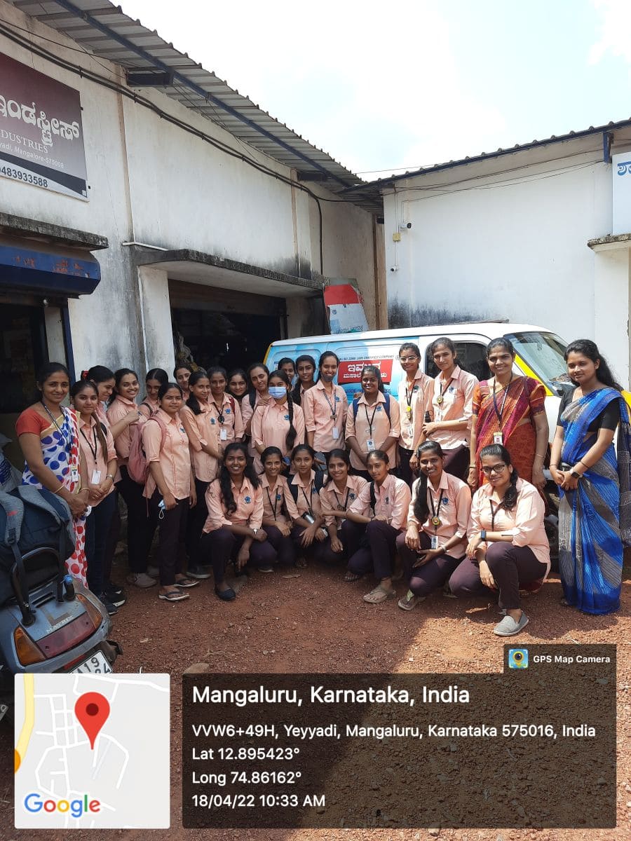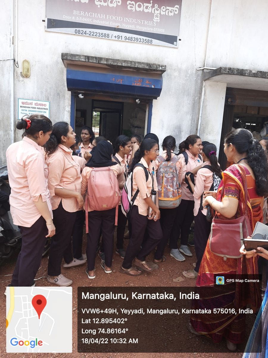 On Monday, 18 April 2022 the Department of Secretarial Practice organized an industrial visit to Emunah Masala Berachah Food Industrial Estate, Yeyyadi, Mangalore. The Final year BA, Office Practice and Management students 25 in number along with three faculty members visited the factory. The Proprietor, Mr. Samuel Soans explained the process of preparing variety masala powders, the various machineries used, their functioning etc. He gave a demo of how the various powdered ingredients mixed in a 300 kg mixer and the process of packing and sealing masala in an automated machine for a pre-fixed net weight and for fixed number of packets. Students got a rare opportunity to see the variety of ingredients, their price and its use. Some of the ingredients were imported ones too. The proprietor briefed the students about the inception of his industry and its progress, where with four varieties now has grown to 62 types of products. He also informed his new plans of masala for seasoning. He motivated the students to make a study of their area of interest by reading related books and to start their own entrepreneurship. He highlighted the importance of hard work, dedication and gave the tips to retain the quality and face the competitions with a good amount of margin. The visit was a fruitful one with an interactive session.