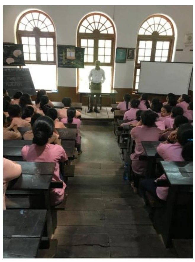 A Seminar on Mindfulness Meditation by Dr V. Premanand, Head, PG Department of Psychology, was organised for final year Psychology students and first year CBCS students of St Agnes College Autonomous), Mangaluru on 06 February 2020. Dr V. Premanand began the session with the quote “Mind is minding everything”. He briefed the students about the application of mindful meditation and its origin. He engaged them by demonstrating the techniques of mindfulness meditation i.e. Wise Mind technique, Meta meditation and a compilation of several techniques, which emphasized on breathing, bodily sensation, feelings, emotions, love and self compassion, which the students experienced and found useful.