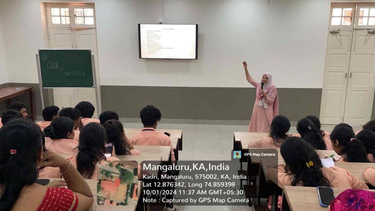 A Seminar on Research Essentials from Ideas to Findings was organised by Business Administration for III BBA students in A2 at 11am. The resource person explained the format and the topics which has to be included in student projects. She explained how to search for topics, how to prepare for the Project, what topics to include, the main aspects and criteria which should be followed. She also shared ideas and examples to understand the methodology of completing the project.