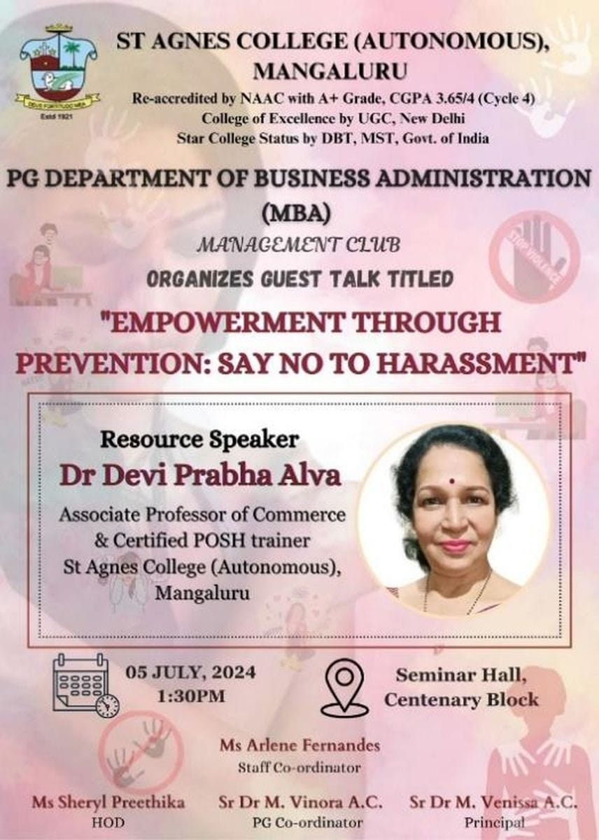 Dr Devi Prabha Alva, Associate Professor of Department of Commerce and Certified POSH Trainer was the resource speaker of the day.