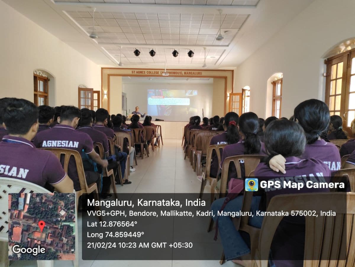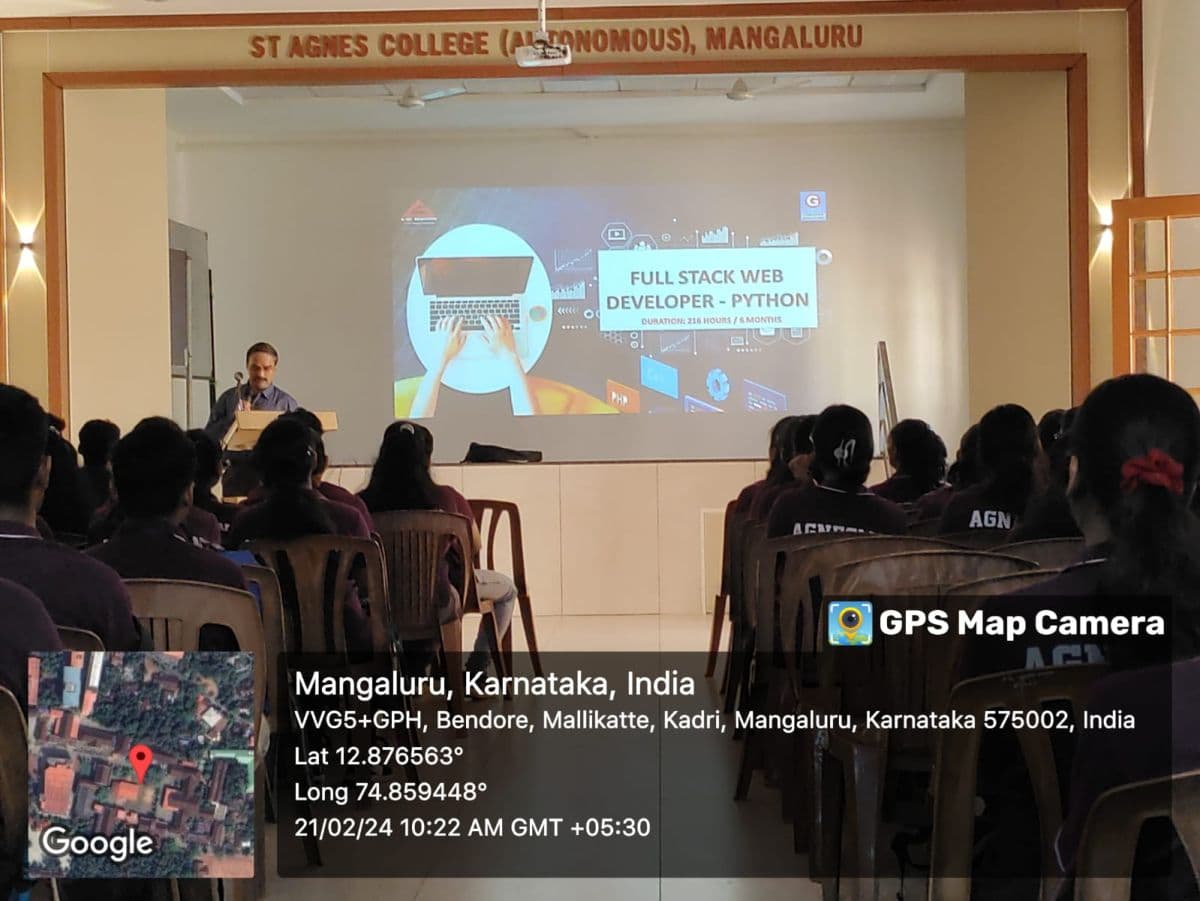 On 21 February 2024 a session on “Full Stack Web Developer” was conducted by the Department of Computer Applications, St Agnes College (Autonomous), Mangaluru in collaboration with the Faculty of GTech Computer Education. The resource person Mr Amrithakara, an esteemed industry practitioner, spoke on the skills required to become a full stack web developer and the role of full stack developers in the tech industry. All the students of BCA participated in the session.
