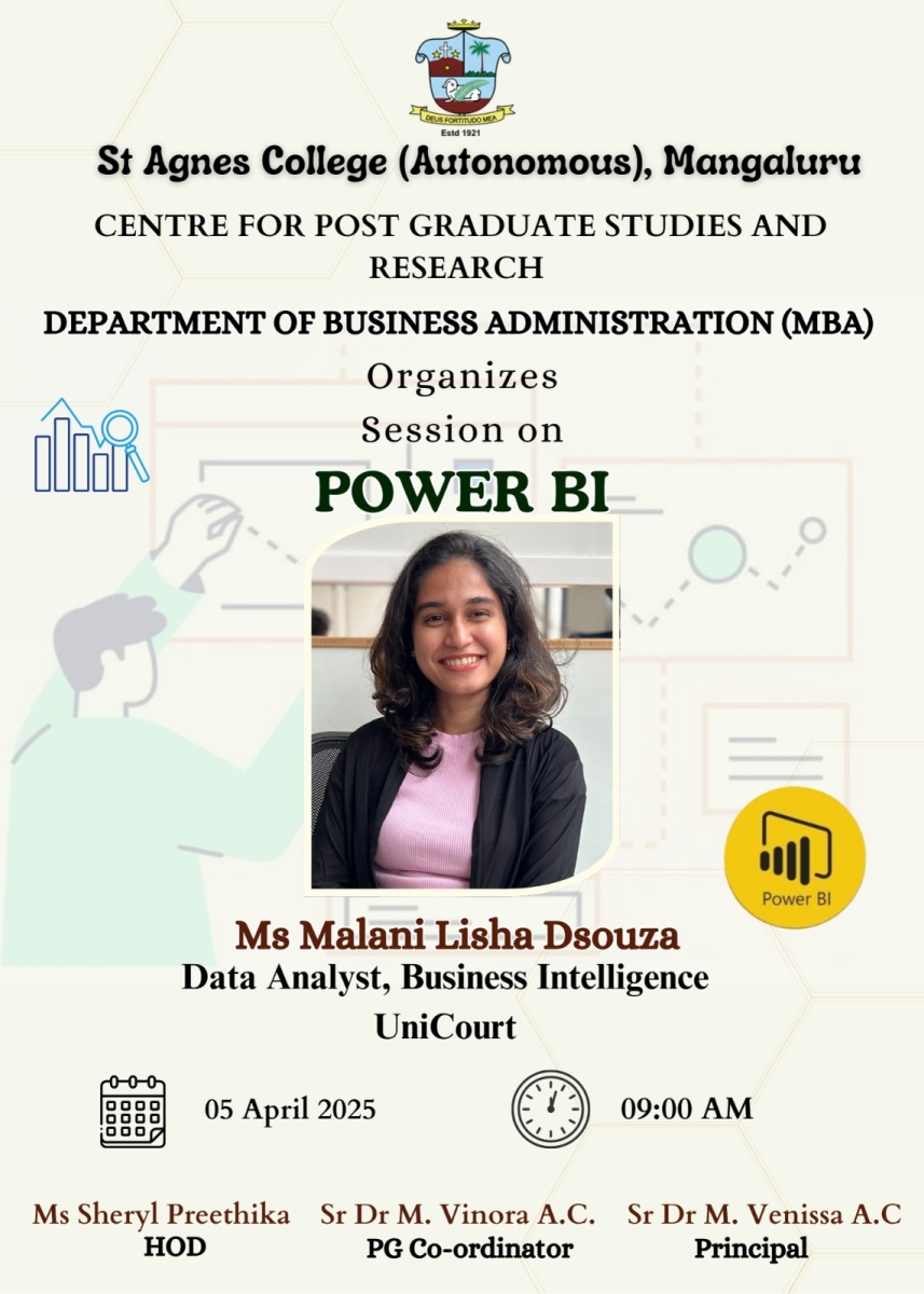 The session was designed as a hands-on training workshop specifically for the II MBA students, enabling them to gain practical exposure to data analytics tools and techniques. Participants actively worked with Power BI, learning how to connect data sources, transform data, and create interactive dashboards and visual reports.