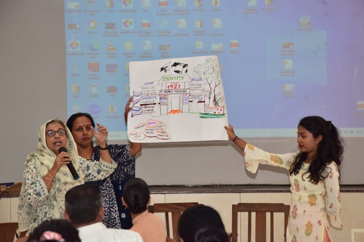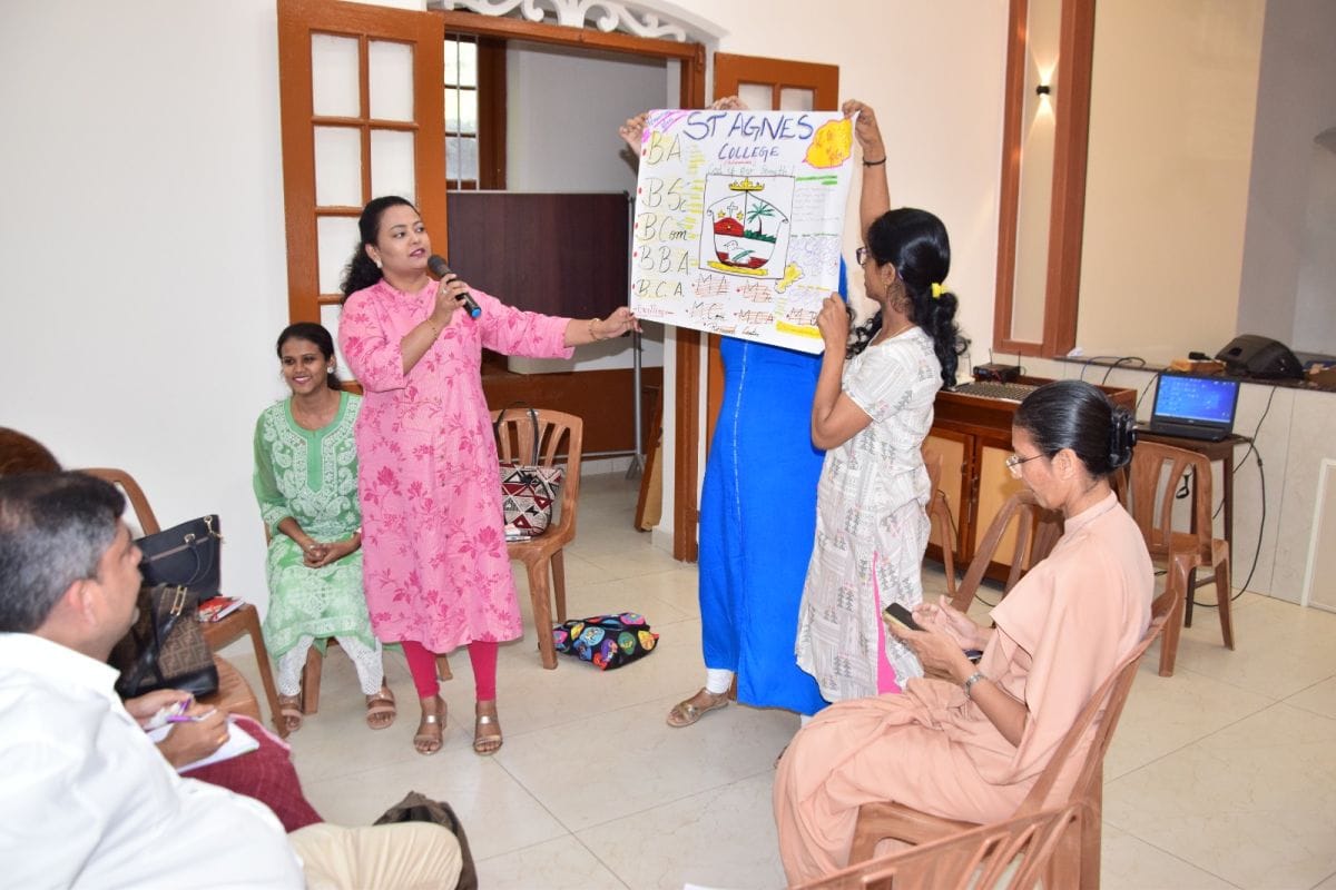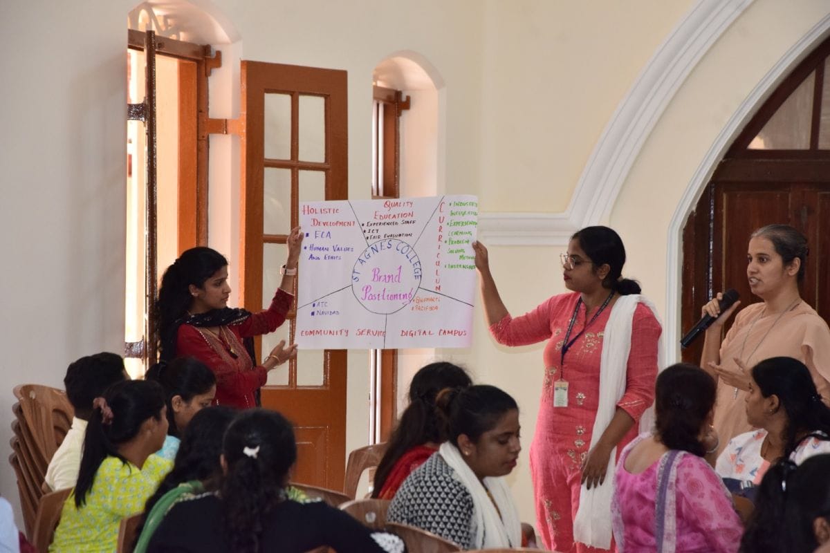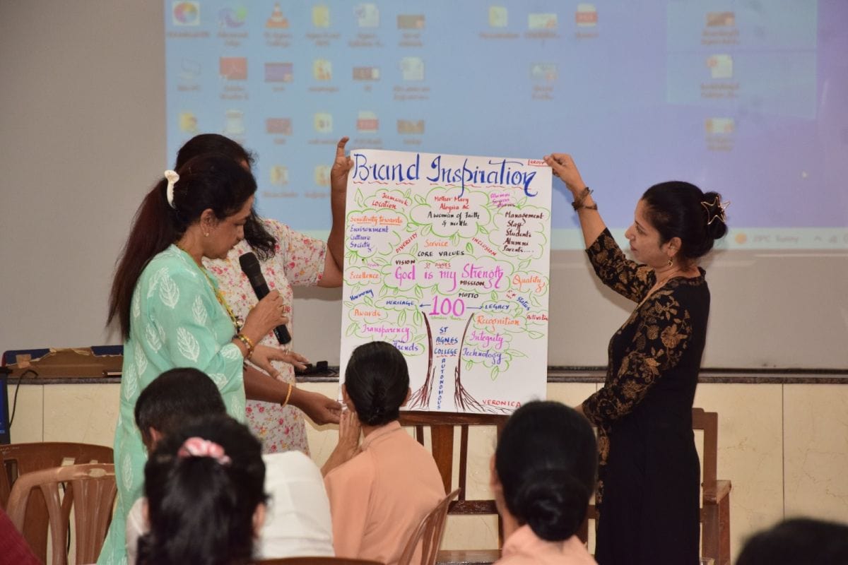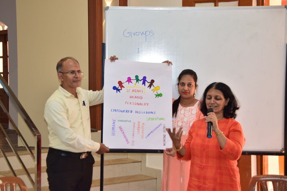 The session was quite exploratory and contemplative. Fr Arul discussed the identity, characteristics, and benefits of a positive organisational culture and branding, using examples from several well-known firms. He helped the group come up with methods for strengthening the identity and making the St Agnes brand more well-known. The whole group was separated into smaller groups in sequence. The entire group was separated into smaller groups to brainstorm and identify St Agnes’ image in the past and present, as well as to consider the future and where the brand will stand.