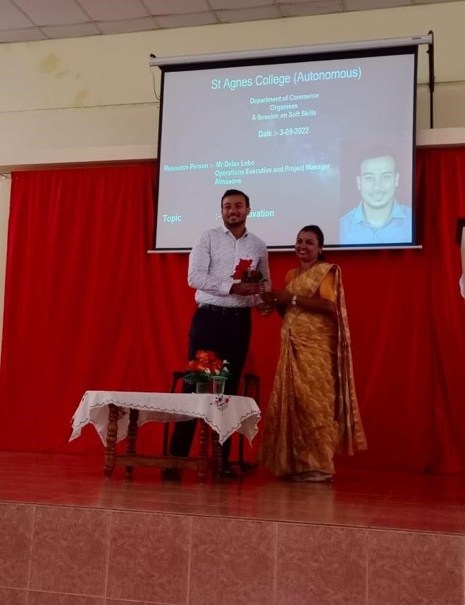On 3 September 2022, the Department of Commerce, St Agnes College (Autonomous), Mangaluru organised a Session on Self Assurance for I B.Com students. Mr Delan Lobo, Operations Executive and Project Manager at Almasons was the Resource Person. Mr Delan said that Self-Assurance is similar to self-confidence and that in the deepest part of themselves, individuals have faith in their strengths. He also said that individuals are aware of their ability to take risks, ability to meet new challenges, ability to stake claims, and, most important, ability to deliver. He also gave tips on how to work with self-assurance, lead with self-assurance and to live with self-assurance.