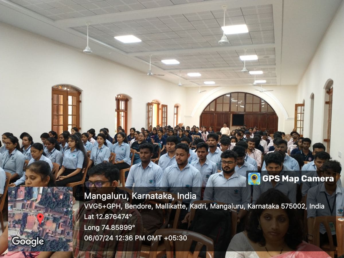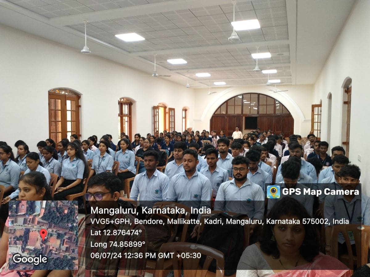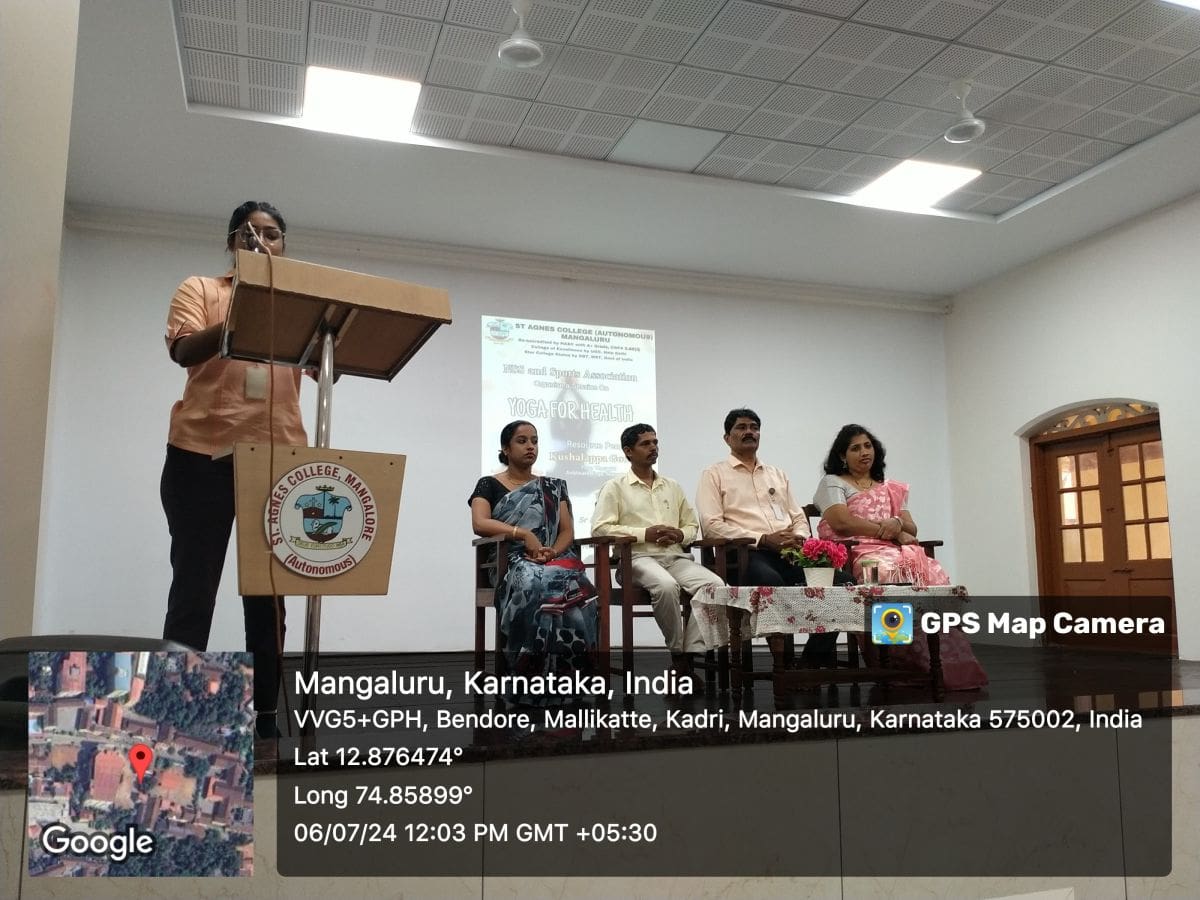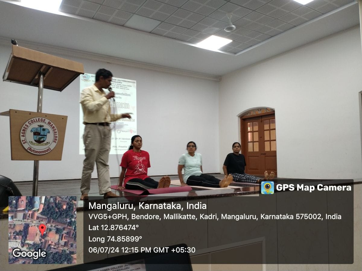 The event commenced with a prayer led by NSS volunteers, setting a reflective and conducive atmosphere for learning. Mr. Kushalappa Gowda began his session by explaining the multifaceted benefits of incorporating yoga into daily life. He highlighted that yoga extends beyond physical exercise, contributing to mental clarity, emotional balance, and spiritual development. During the session, he also demonstrated various Aasanas for students to practice regularly.