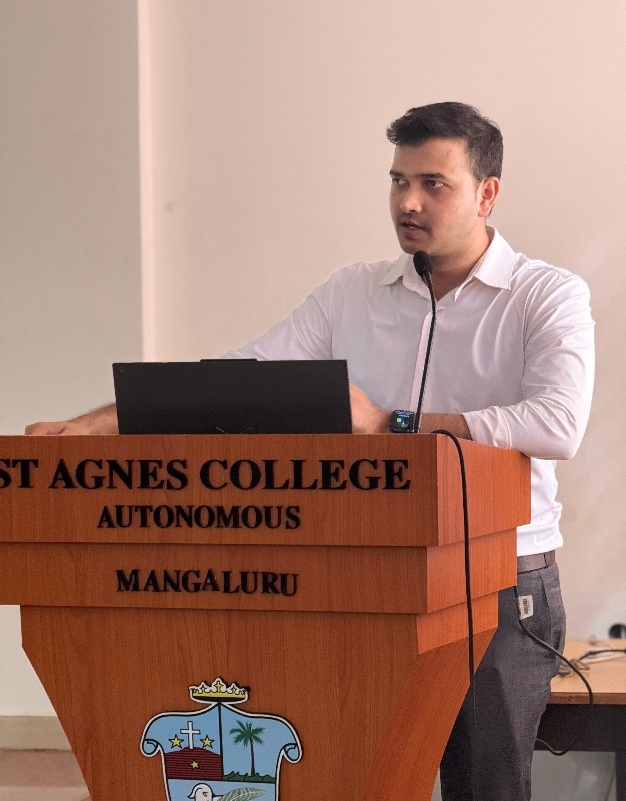 The workshop was conducted by Mr. Abhishek K N, CEO of A and M Edu Solutions, who served as the resource speaker. The event began with a prayer song by Ms. Raksha and team, followed by a welcome address and speaker introduction by Mr. Gibson, a second-year MBA student. The program was coordinated by Dr. Mallika Shetty and Ms. Vaishnavi, faculty members from the MBA and MCA departments. Ms. Bindiya, a second-year MCA student, served as the Master of Ceremony.