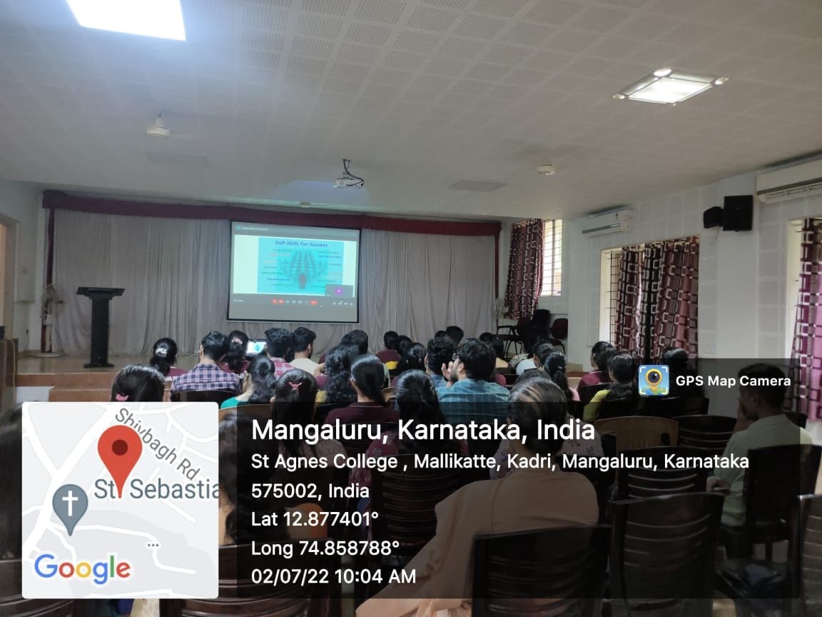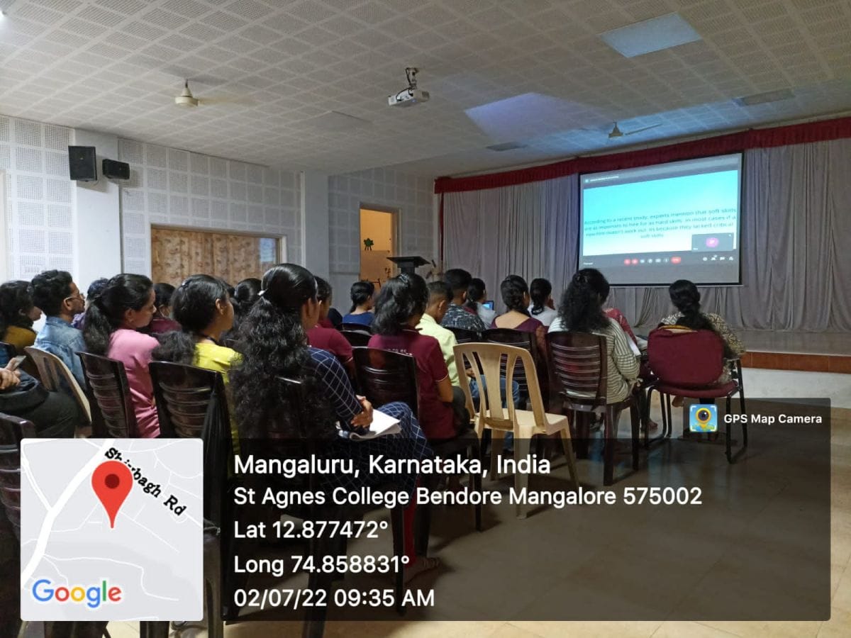 The Post Graduate Department of Chemistry of St Agnes College (Autonomous), Mangaluru organized a webinar on “Soft Skills for Career Success” which was held at P.G. Auditorium on 02 July 2022.