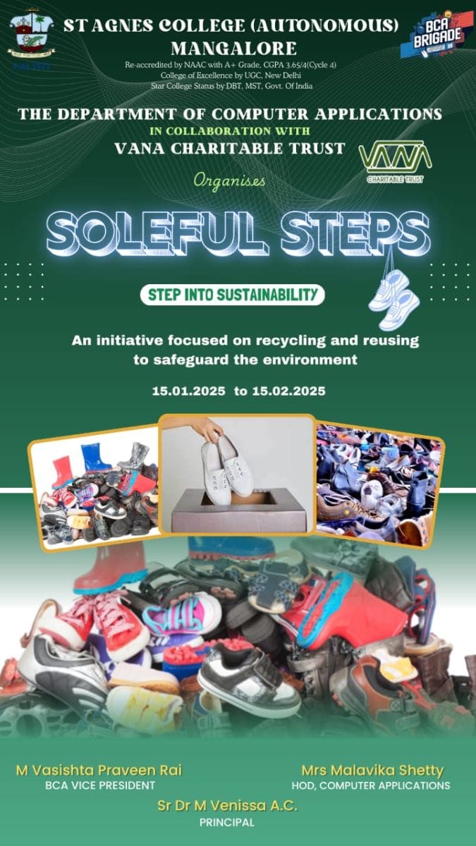 Soleful Steps, originally HEJJE, is an initiative led by the Department of Computer Applications in partnership with Vana Charitable Trust. The drive that was conducted from 15 January to 15 February 2025 aimed to address the mounting issue of waste from discarded footwear by promoting repair, reuse, and recycling.