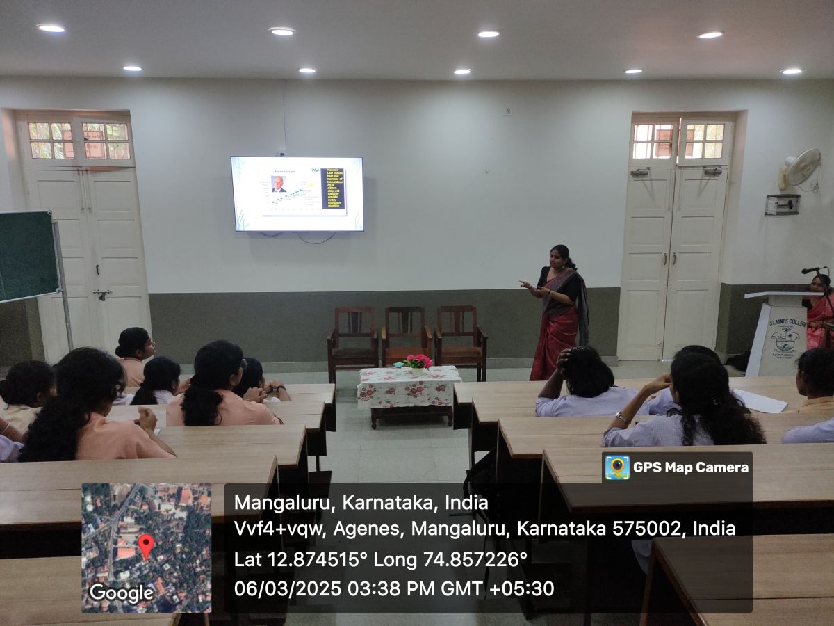 The session began at 3:00 PM with a prayer, which set a serene tone for the event. This was followed by a warm welcome and introduction of the guest speaker by Ms. Aleena Sparrow, Assistant Professor at St. Agnes College, who highlighted the significant contributions of Ms. Harishtha Prasad in the field of Spintronics and expressed gratitude for her presence at the lecture.