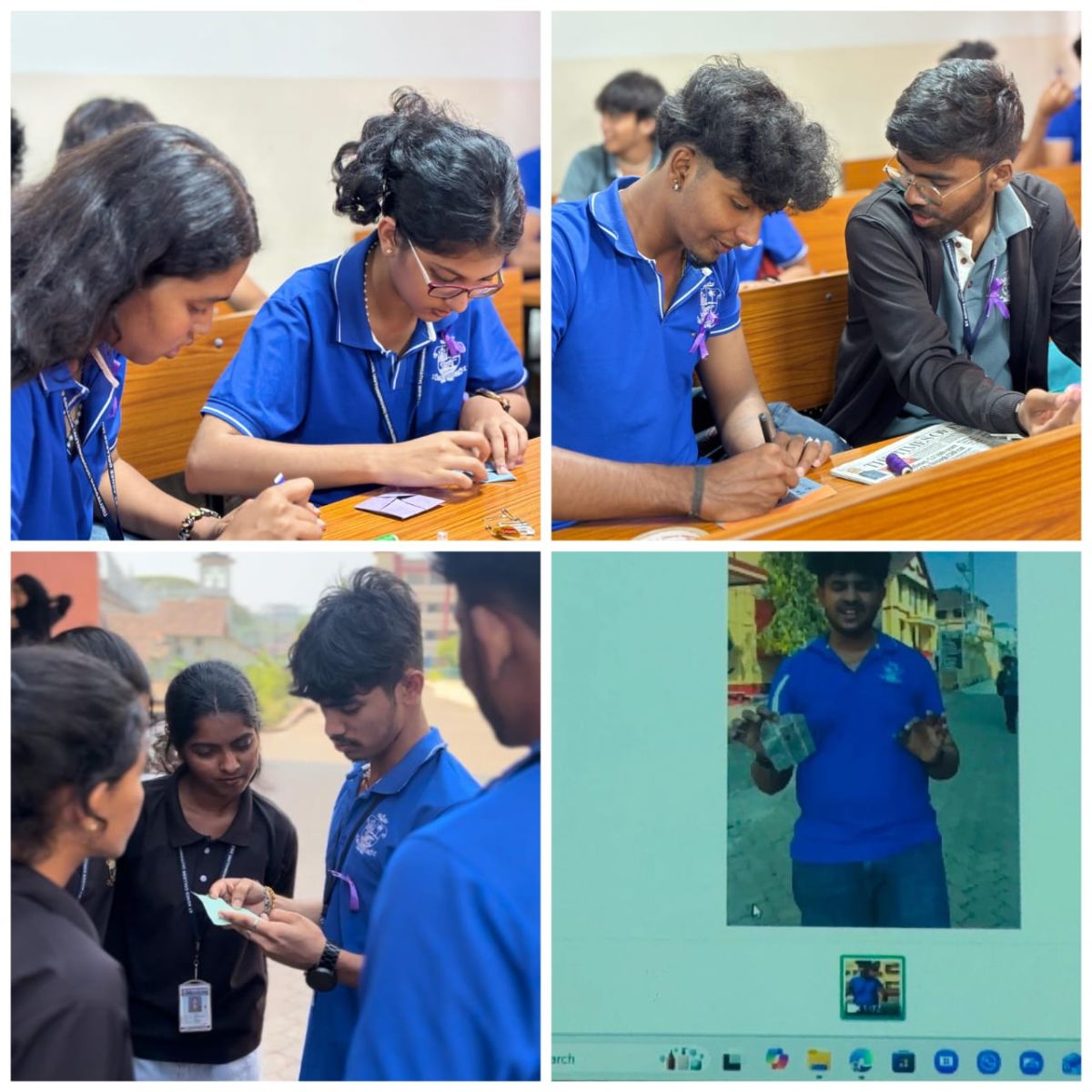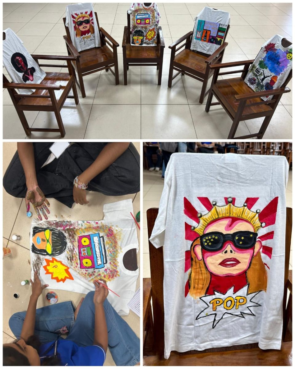 The T-Shirt Painting Competition titled “Echoes of Pop” was conducted in LH01 from 1:40 PM to 2:40 PM, with the participation of 5 teams. The event was led by Event Head Kreethana from 2nd MBA and Assistant Event Head Thasma Rai from 1st MBA. The competition was judged by Mr. Roopesh. Participants designed creative and colourful T-shirts based on the given theme, showcasing their imagination and artistic skills. The judging criteria included creativity, originality, and relevance to the theme. The event created a joyful atmosphere where students expressed their ideas through fashion and art.