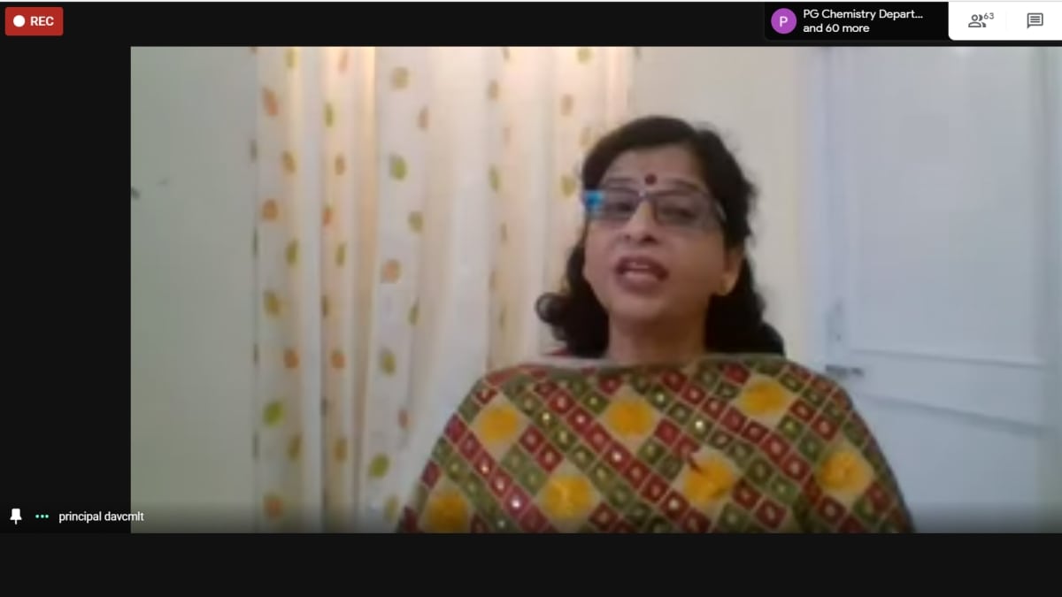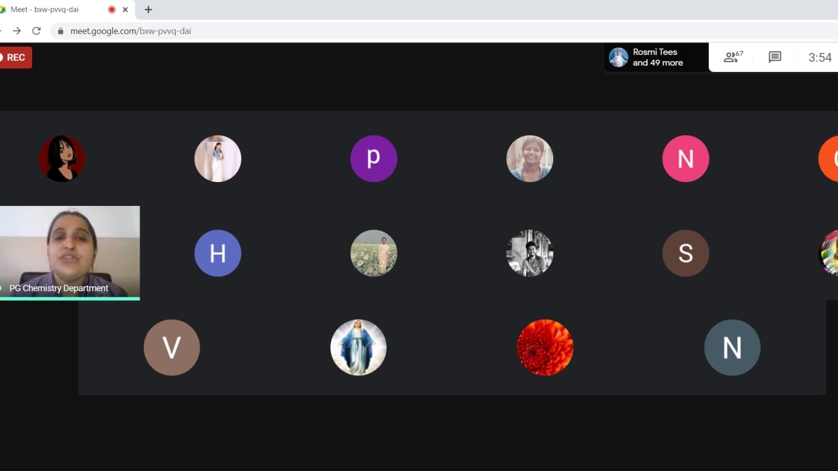 The post graduate department of chemistry of St Agnes college had organised a “CHEM AURA- the department association”, inaugural programme on 30-11-2020.The main purpose of this event was to create more flexilibility in the field of chemistry among students. Dr. Ekta Khosla, Principal, DAV college, Malout, Punjab, was present as the chief guest and speaker for the day. Principal Sr Dr M Venissa A C and Sr Dr Vinora A.C ,the PG coordinator was also present for the event. The programme started by seeking the blessings of god. Sr Gloria D’souza, Assistant professor, department of chemistry, digitally welcomed all. Later, students of second M.Sc chemistry have welcomed everyone innovatively in the form of dance by describing the do and dont’s, one must follow inside the lab. Later, the introduction of chem aura members was done by Ms.Sowmya Samuel, Secretary of chem aura and followed by action plan for CHEM AURA for year 2020 was read by Ms.Aparna P R, President of chem aura association.