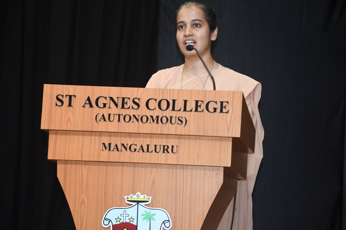 Mrs Hannabel Alva, HOD & Assistant Professor, Department of M. Sc. Big Data Analytics welcomed the gathering and introduced the chief guest. Sr Gloria D Souza A.C., Assistant Professor; Department of M. Sc. Chemistry compered the programme. Mrs Akshatha Shetty, Assistant Professor, Department of MCA proposed the vote of thanks and the program concluded with our College Anthem.