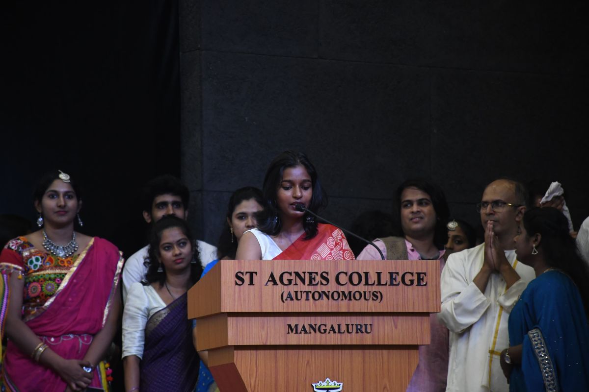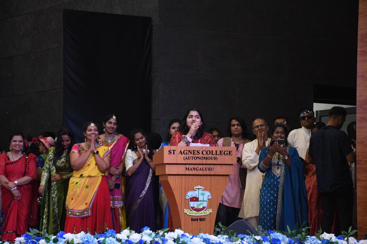This vibrant event was graced by a distinguished panel, including Sr. Dr. M. Venissa A.C., the Principal; Sr. Dr. Roopa Rodrigues A.C., the Vice-Principal; Sr. Dr. Vinora A.C., the Coordinator for P.G. Studies; Sr. Carmel Rita A.C., the Administrator; Registrar, and IQAC Coordinator, Deans and Head of the Departments; along with student Presidents Ms. Privy D’Souza and Mr. Prathik Rai of the UG and PG student bodies respectively.