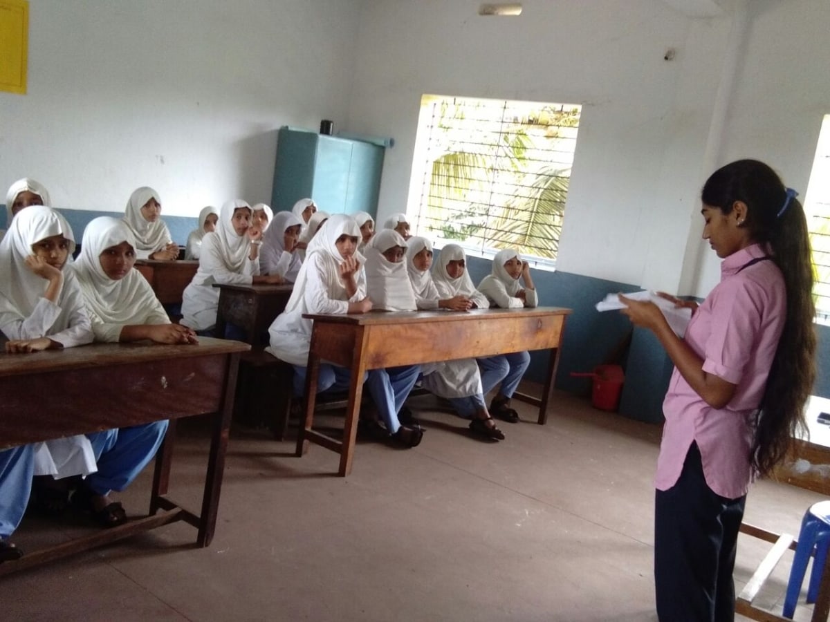 The NSS volunteers explained to them about the different physical and mental changes they undergo during periods and different ways to handle mood swings,pain etc . The students responded positively.