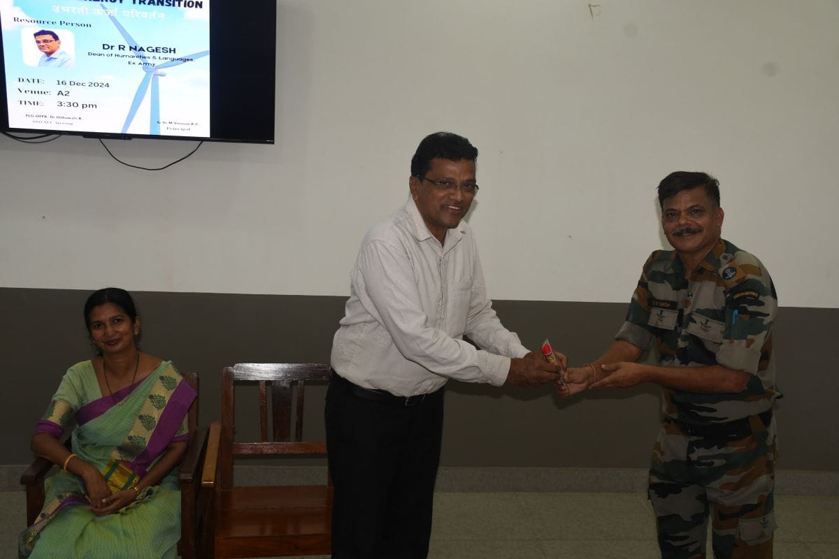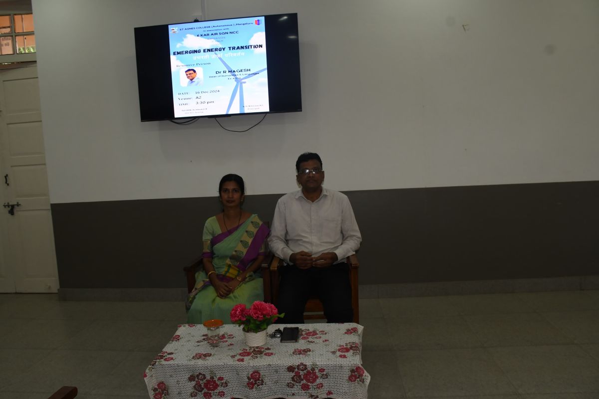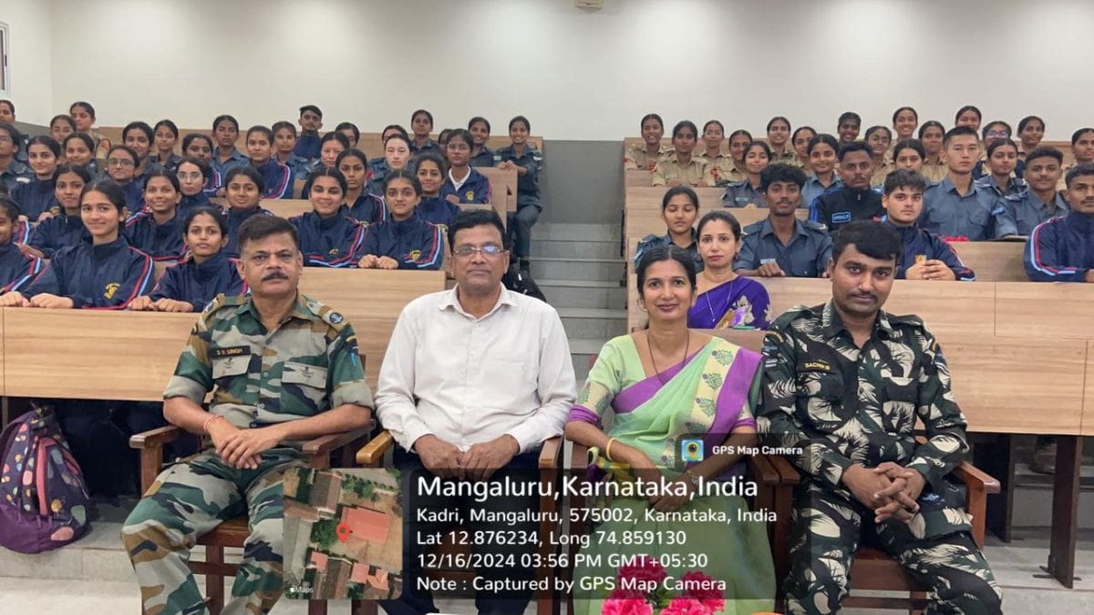 St. Agnes College (Autonomous) Mangalore, in association with 6 Kar Air Sqn NCC, conducted a talk (District level) on “Emerging Energy Transition” for the NCC Cadets of different institutions on 16 December 2024. The resource person was Dr R Nagesh, Dean of Humanities and Language, an ex-Army Personnel. The talk began with the highlights of emerging sources of energy, renewable sources and non-renewable sources, bioenergy, tidal and wave energy, and geothermal energy, its importance and uses. In his talk at the end, Dr Nagesh also motivated the young cadets, saying how everything could be accomplished in life through practicing simplicity, being respectful, and upholding the moral values. He also said gratitude towards the country can be expressed through healthy practices by keeping our environment eco-friendly. A total of 74 cadets from St. Aloysius Deemed to be University, St. Joseph’s Engineering College, St. Agnes PU and Degree cadets of 6 Kar Air Sqn and 18 Kar Battalion were a part of the program. PI staff of 6 Kar Air Sqn, JWO SB Singh and CPL Sachin attended the session. At the end, ANO of NCC Airwing Flying Officer Dr. Hithakshi thanked the gathering. Cdt Sgt Anusha compered the program.