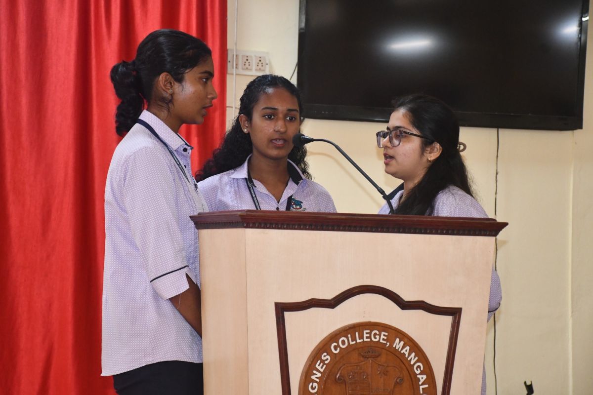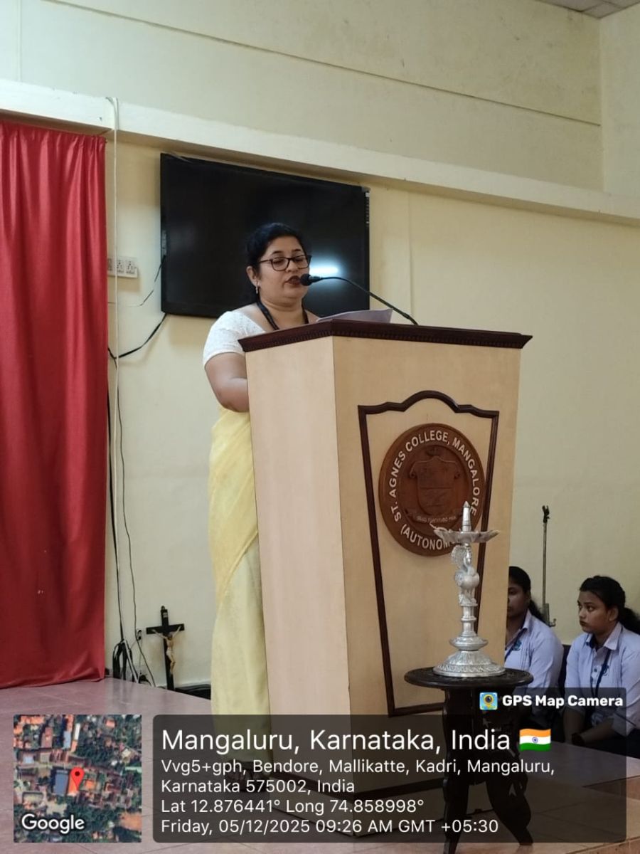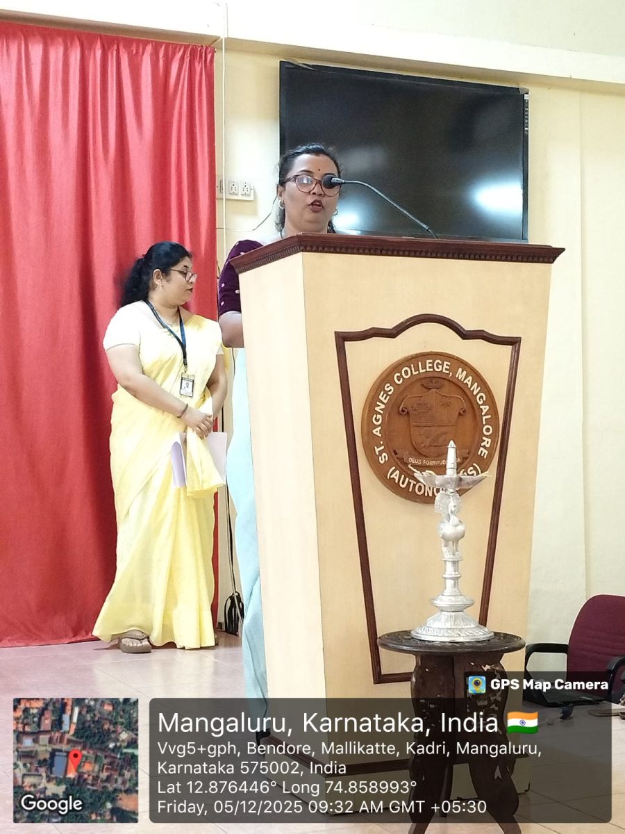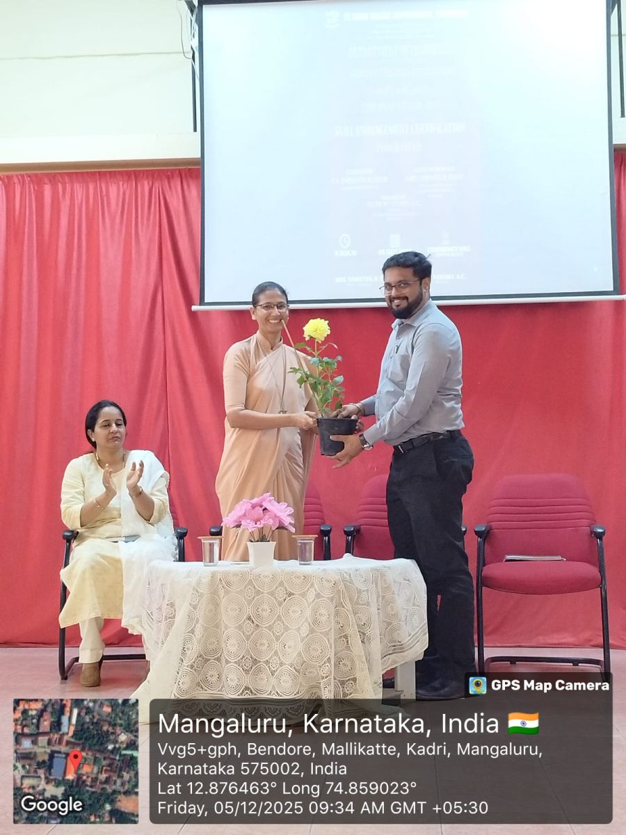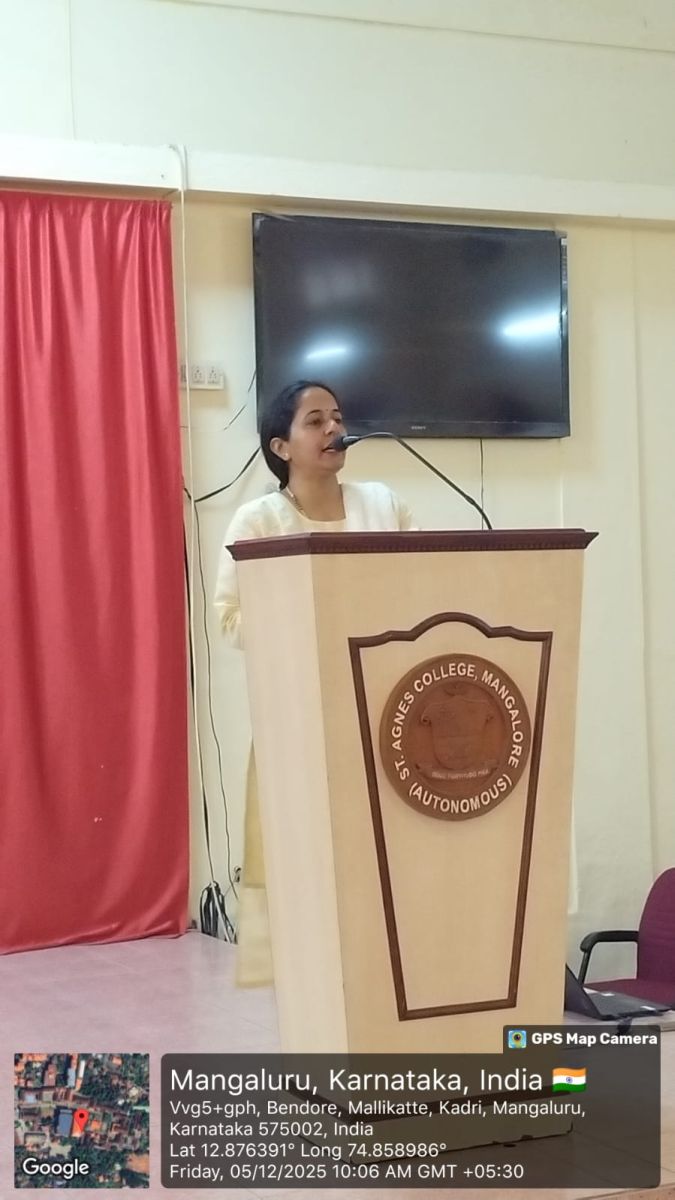 The Guest of Honour, Mrs Arpana R Bhat, Alumna and Lead – Institution Partnerships, MFK Foundation, Bengaluru, oriented the students on the various certification courses available and clearly explained how such courses help in developing confidence, communication, leadership and professional readiness. She shared her happiness of returning to her alma mater and urged students to cultivate strong roots with their institution, encouraging them to return to St Agnes someday and give back to future learners just as she has done.