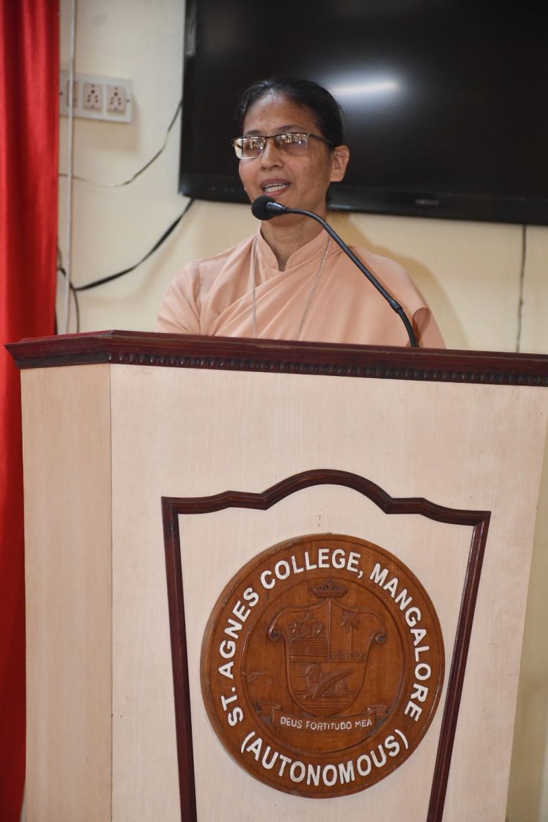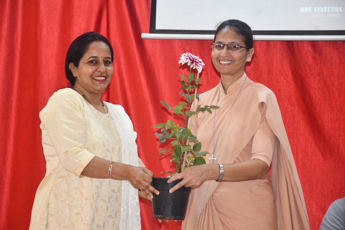 This was followed by the Presidential Address by Sr Dr M Venissa A.C., Principal of the college. She praised the alumna, Mrs Arpana R Bhat, for her commendable professional journey and expressed pride in her accomplishments. She encouraged the students to get inspired by alumnae success stories and to be determined contributors to society and motivated them to explore skill-development opportunities with dedication and enthusiasm.