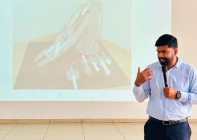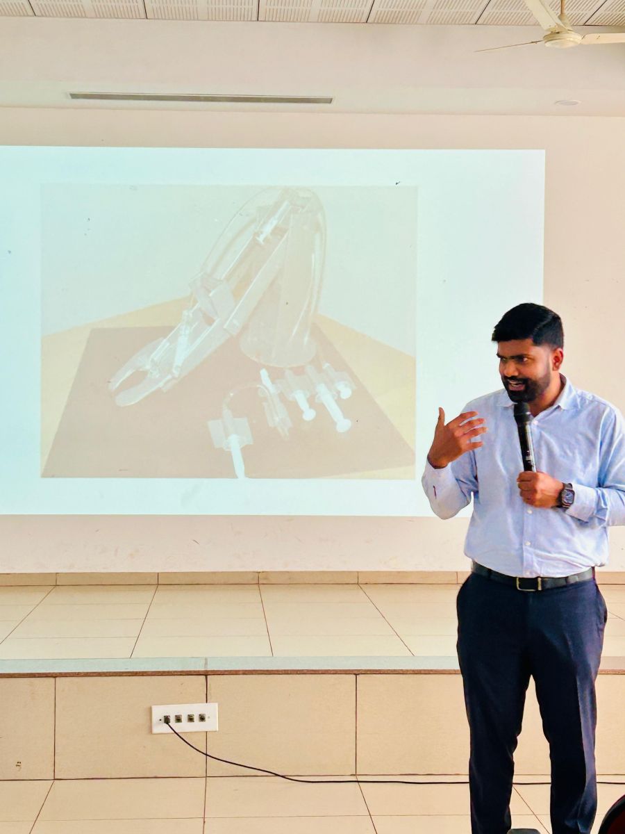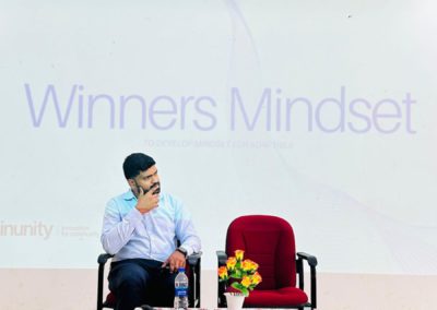 Mr. Johnson also explained how he encourages his students to think creatively and develop innovative ideas, fostering an environment that supports experimentation and originality. He introduced the concept of two metaphorical cages: The Golden Cage – representing comfort zones that restrict growth and the Cage of Resistance – symbolizing limitations we impose on ourselves. After which a Q&A session was held. Students participated actively, asking insightful questions about how they could develop their own ideas and pursue innovation.