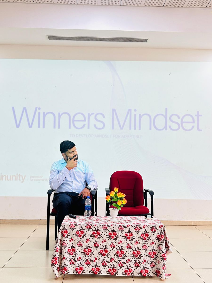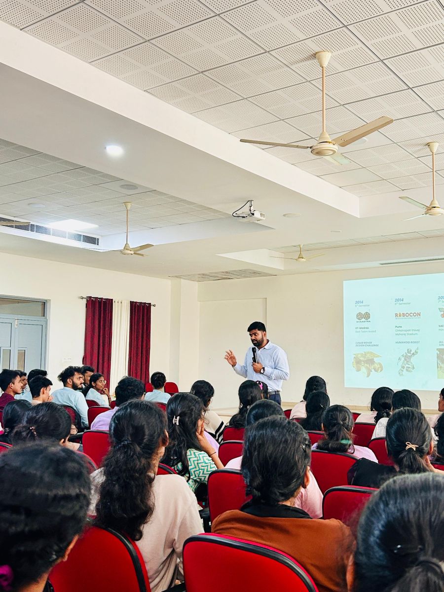 Following this, the resource person Mr. Johnson began his talk. He shared his life journey, highlighting how he maintained hope and determination despite challenges. He spoke about his first invention—a plane, which marked an important milestone in driving his entrepreneurial mindset.