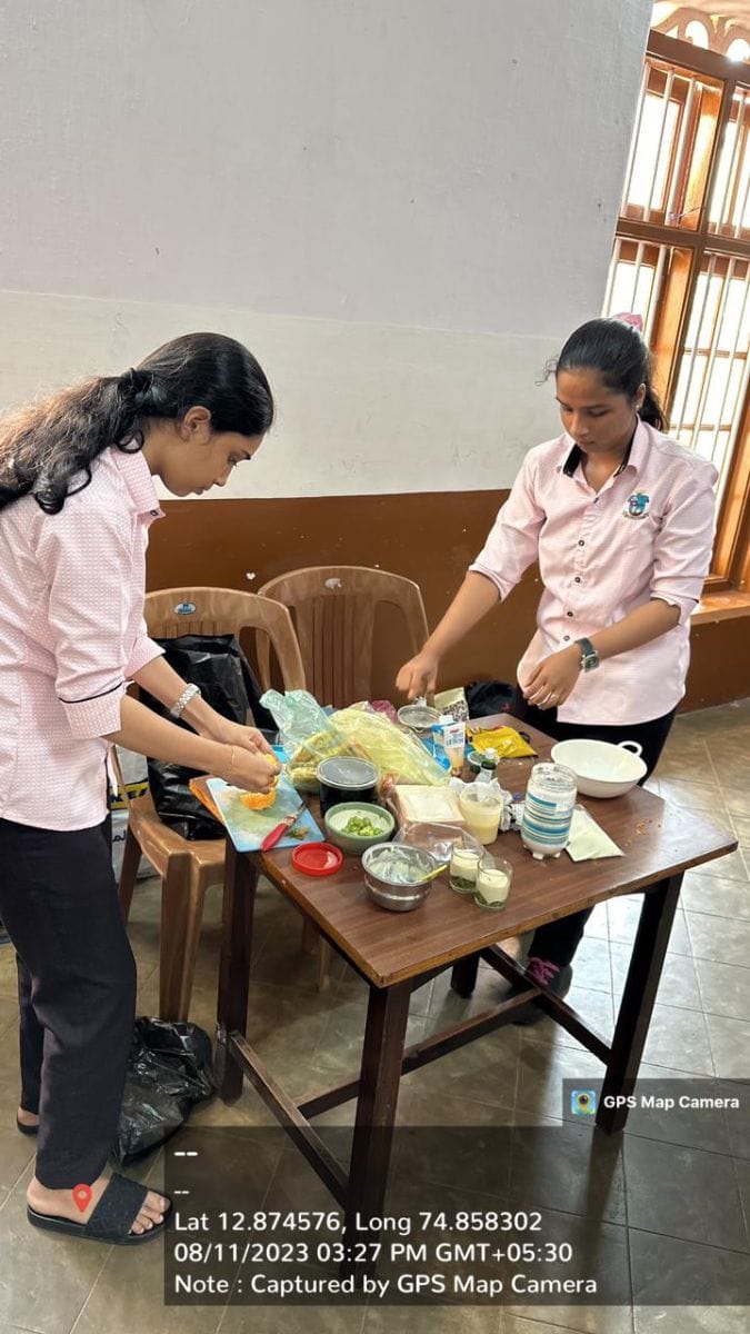 There were 7 teams that participated eagerly in the contest, each team consisting of two participants. There was a lot of enthusiasm and energy among the participants. The competition was a culinary event that brought together participants from diverse backgrounds to showcase their creativity and culinary skills. The competition aimed to celebrate the spirit of patriotism while challenging participants to prepare dishes representing the three colors of the Indian national flag without using traditional cooking methods involving fire.Critiquing the vibrant dishes of the competition were Ms Deeksha from the Commerce department and Ms Keerthi from the Nutrition department.The judgement was based on taste, creativity and adherence to the topic.
