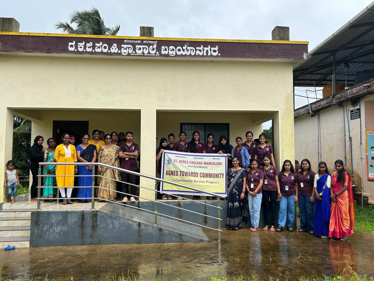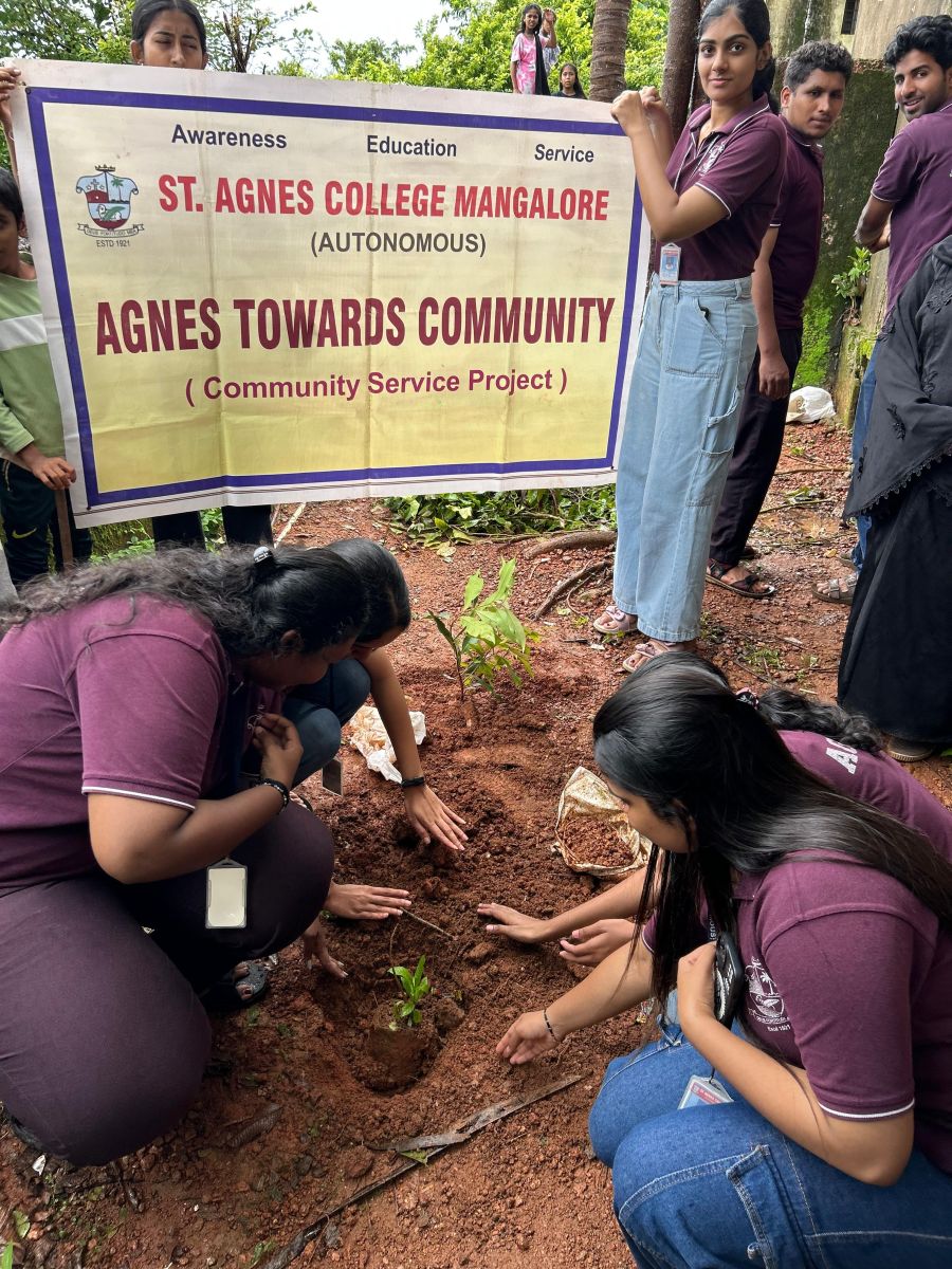 The day began with all 28 students assembling at college for roll call, during which 10 saplings were distributed for the planting activity. We were joined by Mrs Seementhini Fernandes, and together we traveled by bus, first to Neermarga, and then onward to our destination. We arrived at the school at around 10:15 AM, where we were welcomed warmly by one of the school teachers. The teachers introduced us to the students and shared the purpose of our visit. There were around 30–40 school children, along with 5 staff members in attendance.