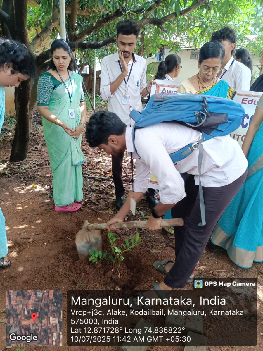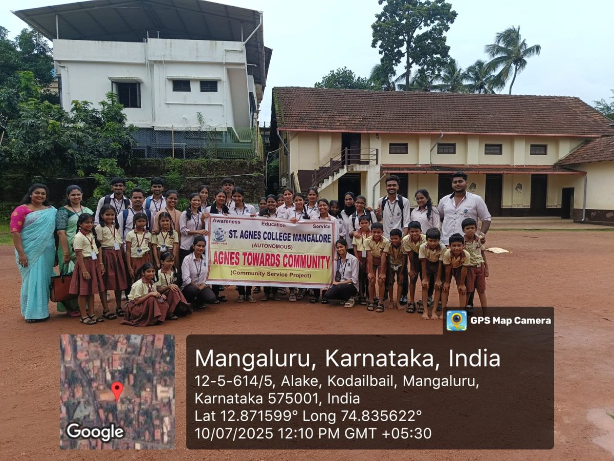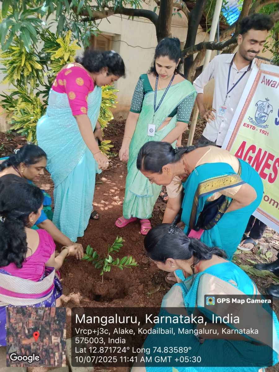 On July 10th, St. Agnes College organized a vibrant community service project in celebration of Vanamahotsava. Twenty-five enthusiastic students, accompanied by Mrs. Neetha, Assistant Professor of BCA, visited BEM Moegling English School in Carstreet to mark the occasion. The event commenced with a soulful prayer song led by Shrinidhi, a third-year BCom student, followed by a warm welcome and program hosting by Aastha, also a third-year BCom student. Mrs. Vijaya, a teacher at BEM English School, addressed the gathering and emphasized the importance of Vanamahotsava in promoting environmental awareness and sustainability. The college students actively engaged with the primary school children through interactive games and lively dance performances, creating a joyful and memorable experience for all.