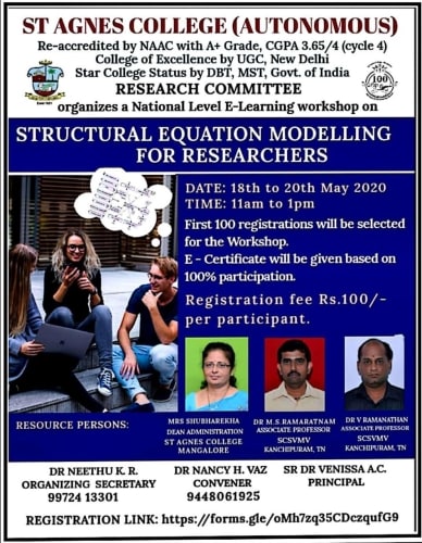 The Second day’s topic was on ‘Introduction to SEM – A Conceptual Framework’, where Dr M. S. Ramaratnam, Associate Professor, Department of Management Studies, Sri Chandrasekarendra Saraswati Viswa Mahavidyalaya, presented the concepts with examples and prepared the participants to the 3rd day’s practical session on SEM. Dr Premanand, Head of the Post Graduate Department of Psychology compered the programme. Dr Hithakshi, HOD & Assistant Professor, Department of Psychology rendered the vote of thanks.